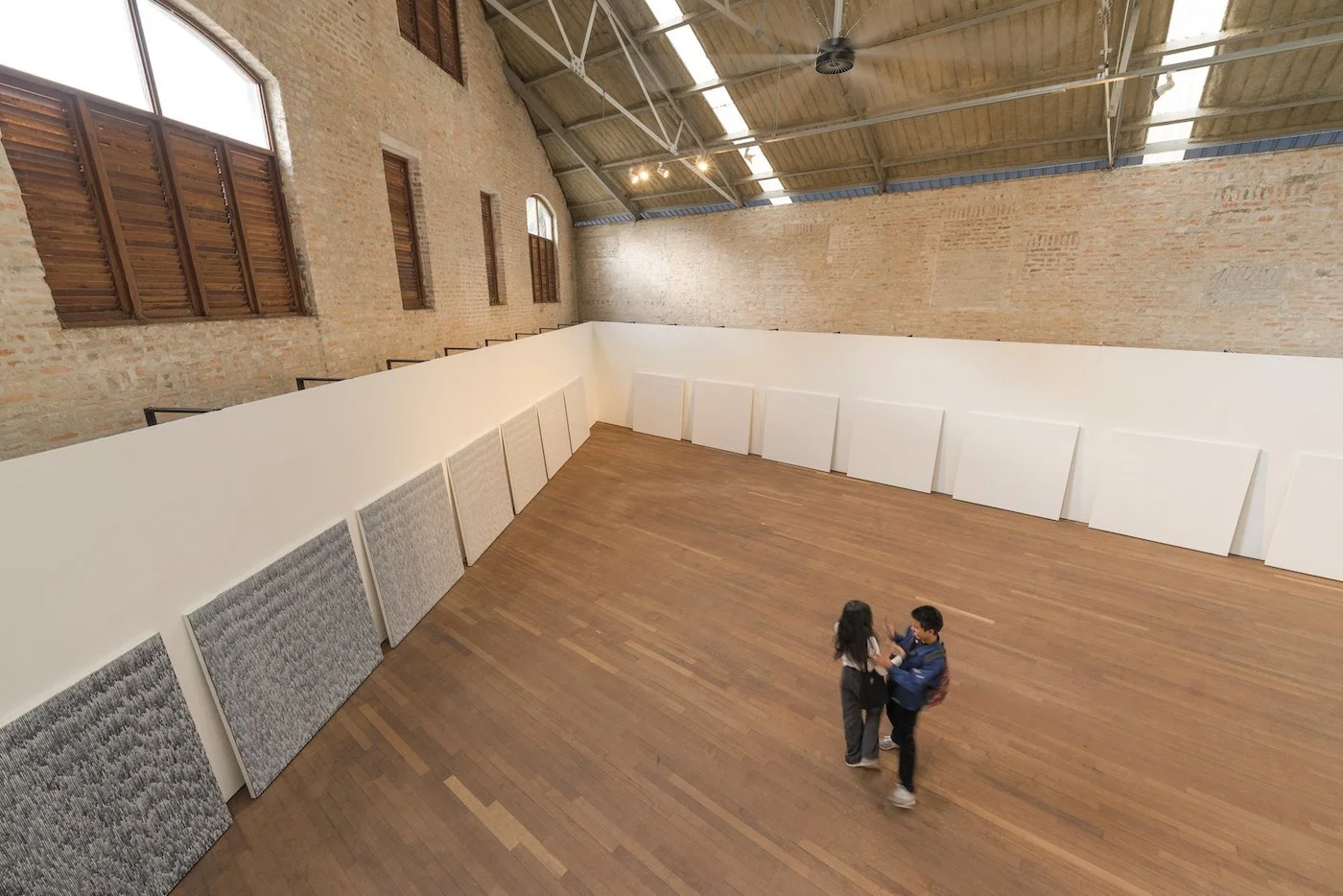 In his solo exhibition A Sea of Despair and Delight (2023) at The Back Room in Kuala Lumpur, chi too presented 21 paintings, each scaled to his height and arm-span. In the suite of paintings, the white paint is added on a dark background, showing a progression until the final canvas looks completely white. This body of work aligns with his methodology of utilising basic elements such as black and white, lines and space.