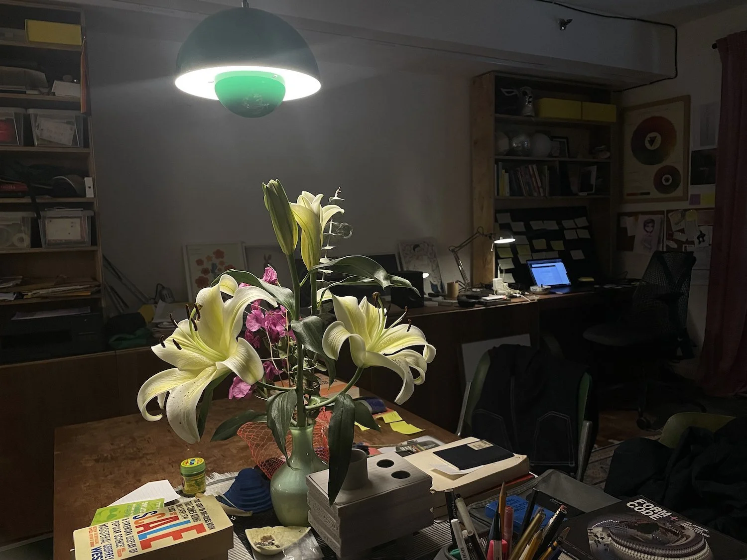 Flowers at the studio. Image courtesy of Derek Tumala.
