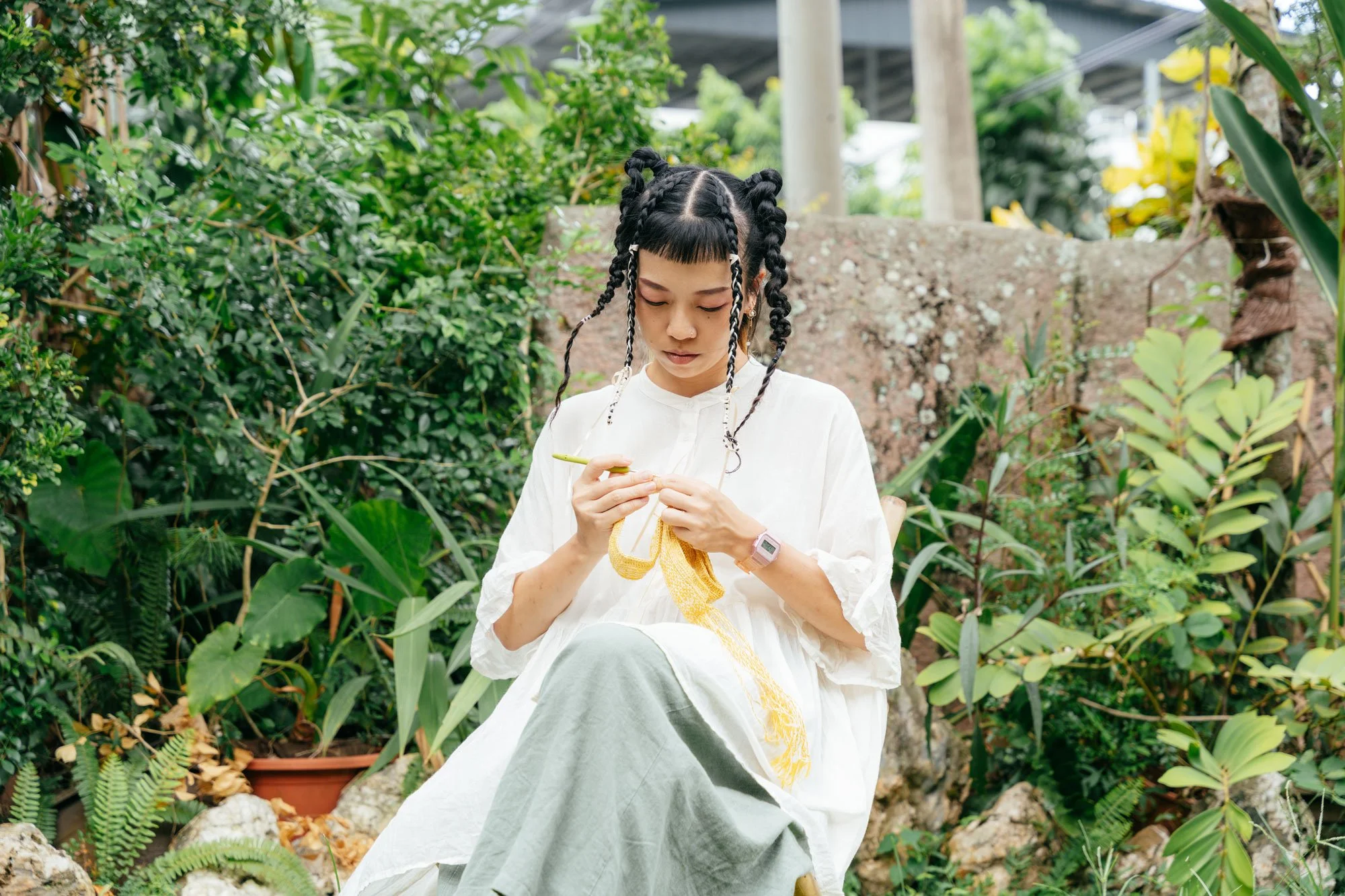 Kelly Jin Mei first picked up crochet and knitting at the age of seven, drawn to the textures and rhythms of thread and loop. Today, the Singapore-based artist creates textile-based works that foreground the materiality of her medium, while tracing its cultural histories and practical applications. Her practice ranges across soft sculpture, textile hangings, and multimedia installations, each piece approached with a deliberate yet intuitive sense of layered composition.