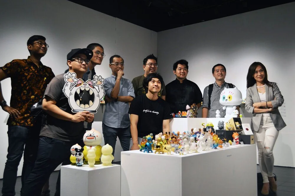 Artists and their creations at My Toys (2018), Titikmerah Gallery at Publika. Image courtesy of Titikmerah Collective.