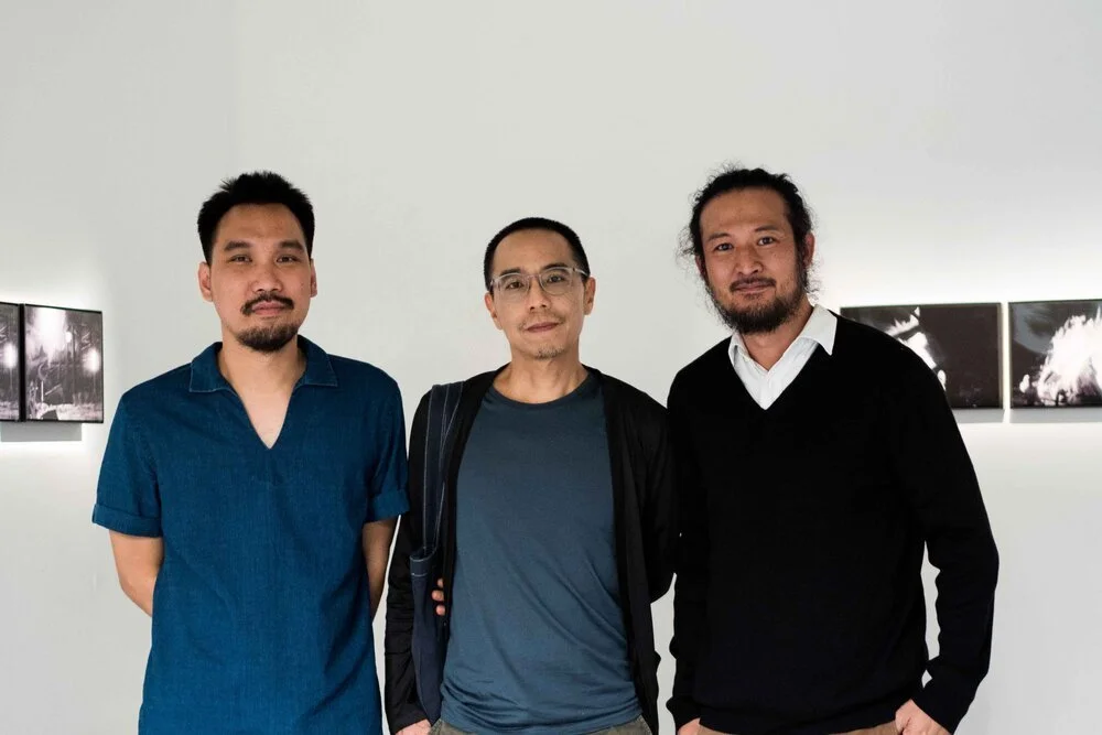 Jirat Prasertsup, Apichatpong Weerasethakul and Torlarp Larpjaroensook at Apichatpong's exhibition Almost Fiction. Image courtesy of Gallery Seescape.
