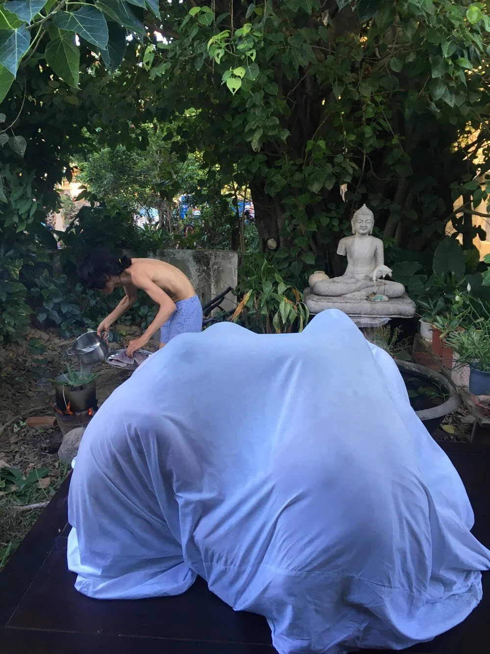 Quốc Thành, Phan Đông Thái, Tăng Xông (Sauna/Tension), 2020, performance. Image courtesy of the artist.