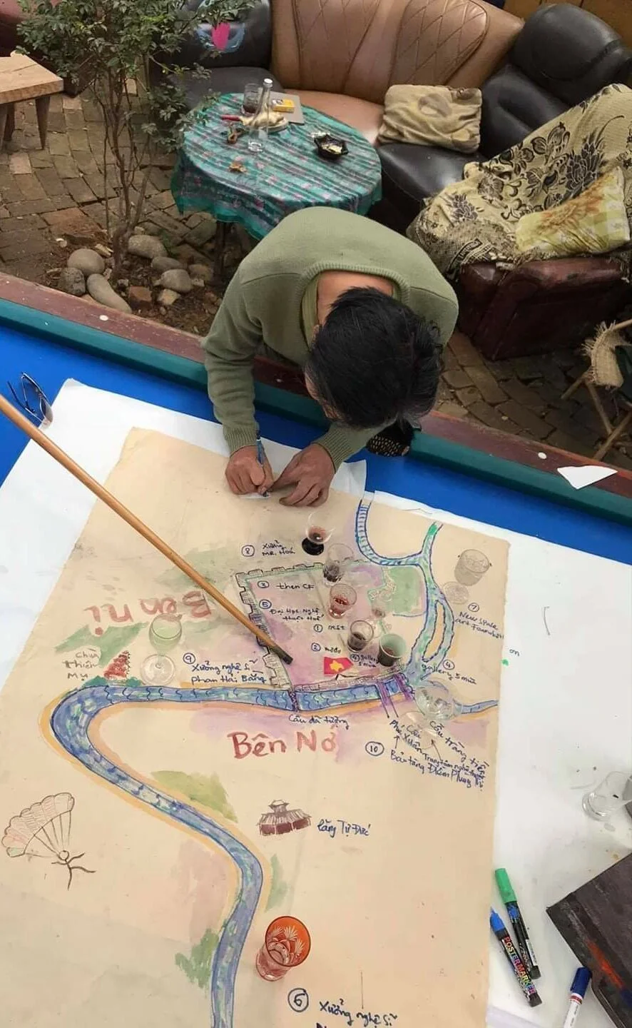 Artist Nguyễn Đức Đạt drawing the NBC (2020) event map. Image courtesy of NCB (2020).
