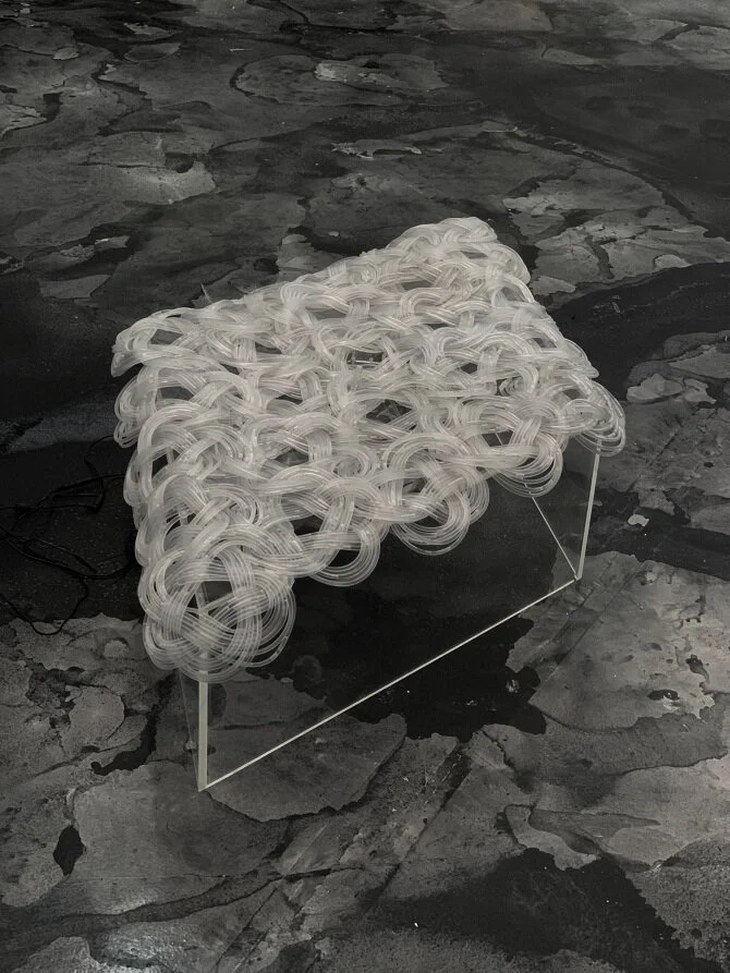 Chok Si Xuan, synapse, 2021, mixed media installation of woven tubing. Image courtesy of the artist.
