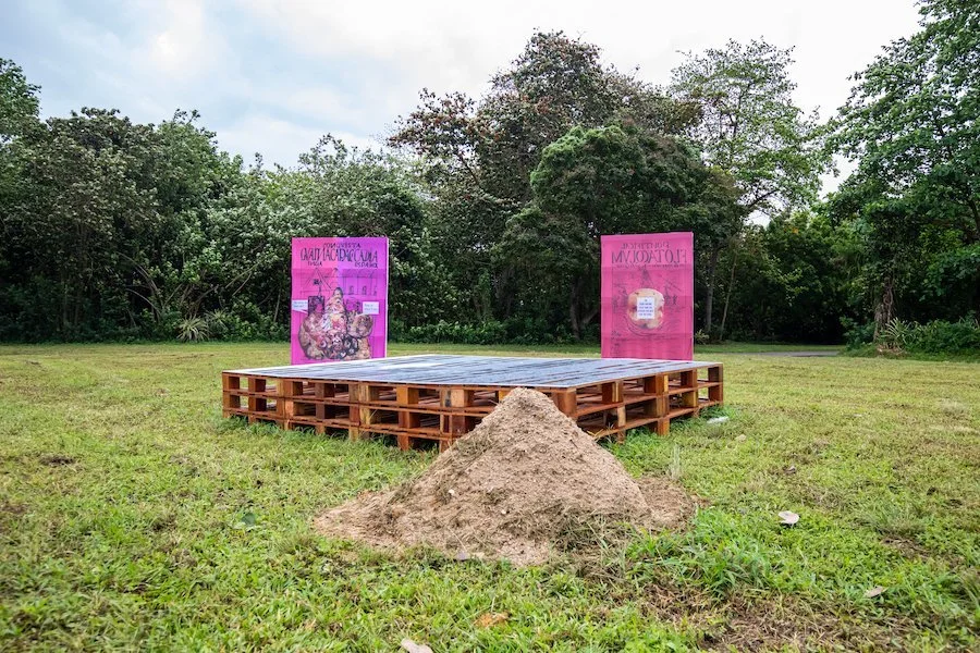 Zarina Muhammad, Moving Earth, Crossing Water, Eating Soil, 2022, at St John’s Island. Image courtesy of Singapore Art Museum.