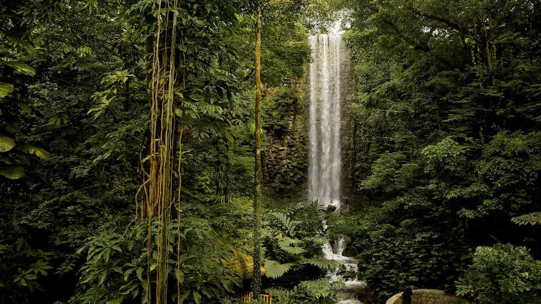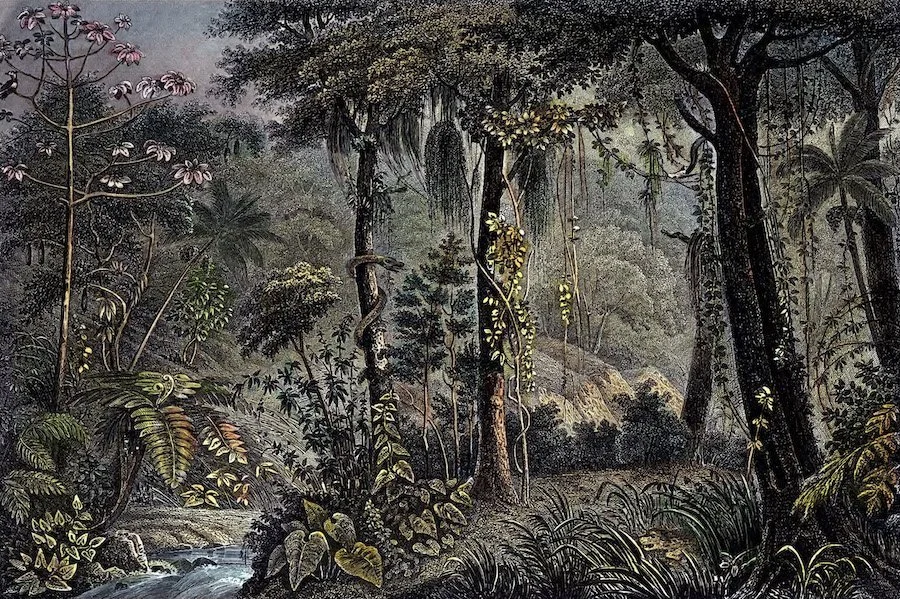 The Forest Speaks Back is not a conventional recording but rather presents towering slideshows of archival and photographic images. Ong explains, "Video projection allows the images to be enlarged, offering an immersive space where audiences can compare their experiences in the real jungle to these artificially constructed environments." She adds, "The medium also allowed me to curate, sequence and provide a smooth transition from one image to the other, lulling the viewer into an almost dreamlike state." Indeed, when I saw the work in person, I was pulled into its slow rhythm and would, at times, fail to realise that the image had already changed. Ong’s purposeful use of pacing pushes the viewer to see just how similar the lithographs and photographs are; they feature lush but neatly arranged foliage, positioned to spotlight star features like waterfalls and ponds.