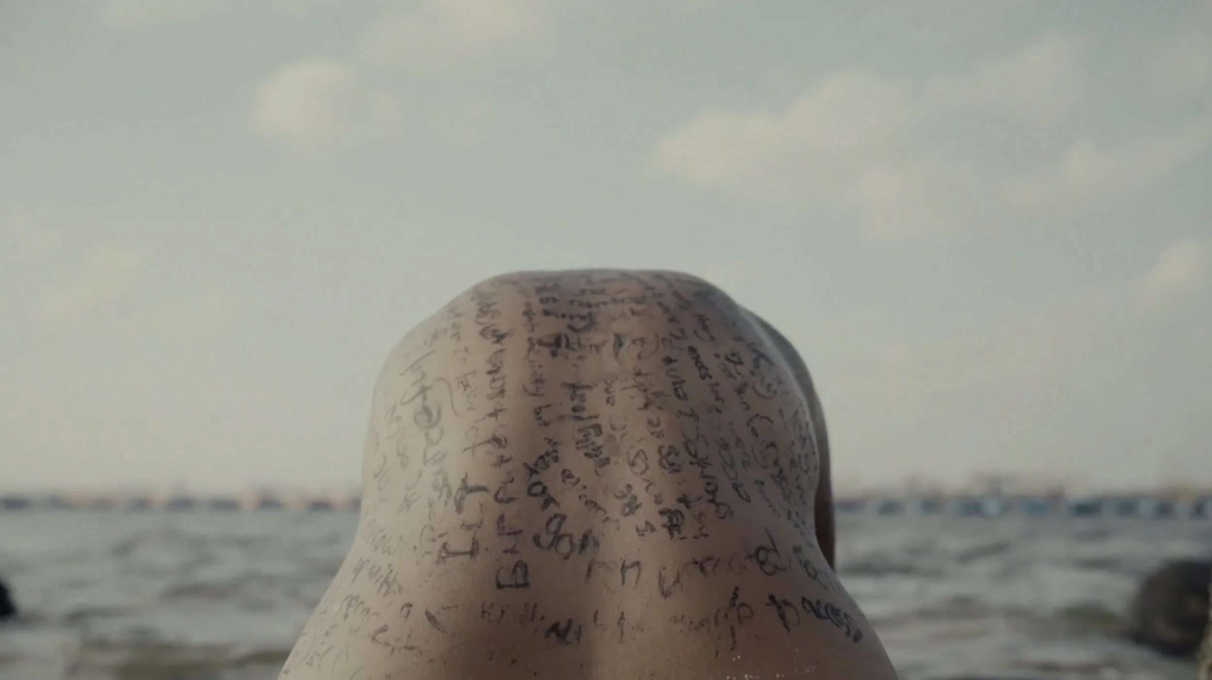 In bekas (2019), artist ila makes use of video to capture performance art in multiple locations, which are important for the work. Created in collaboration with Kin Chui, the short film was exhibited as part of Arus Balik – From below the wind to above the wind and back again at NTU Centre for Contemporary Art Singapore in 2019. In the video installation, ila inscribes text on her bare body and exposes herself to the hot air, sand and sea on reclaimed lands in Singapore. The text narrated ancestral lineages from ‘Malay Singaporeans’, a colonial racial category that muddles the diverse Batak, Boyanese, Buginese, Minangkabau, and Javanese cultures that exist within it. As the body sweats in response to the humidity of the tropics, these texts similarly dissolve into illegible traces. Performed on reclaimed lands, the site-specific performance likewise reminds us of the numerous communities lost due to land expansion.