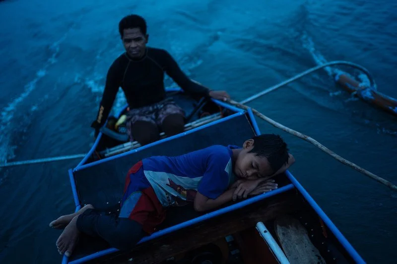 Hannah Reyes Morales, Zaijan Villaruel rests after fishing with his father Umbing in Bataan, Philippines. The image is part of Hannah Reyes Morales’ long-term project Living Lullabies, which “explores the role of lullabies in creating safer spaces for children and caregivers in challenging environments globally.” Image courtesy of the artist.