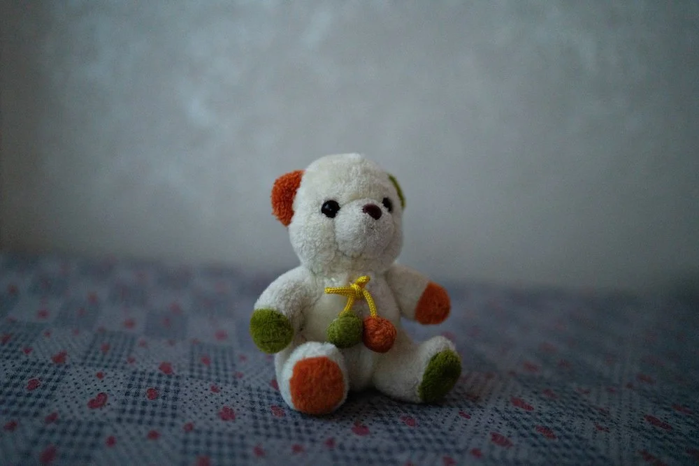 Hannah Reyes Morales, a stuffed animal by a child's bedside. This image is part of a series of stuffed animal portraits for Living Lullabies. Image courtesy of the artist.