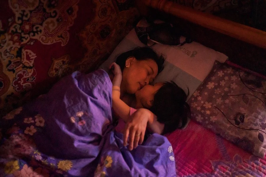 Hannah Reyes Morales, Altanzul Sukhchuluun and her youngest daughter during bed time in Bayankhoshuu, Mongolia. The image is part of Hannah Reyes Morales’ long-term project Living Lullabies’ Image courtesy of the artist.