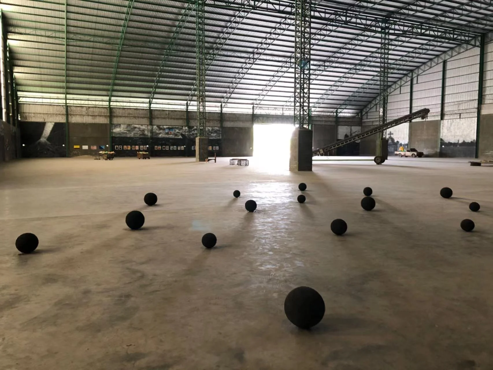 Preecha invites the artists who exhibit in Gallery 1984+1 to create work in dialogue with the rice mill and surrounding area. This is what brought me to the site. I visited the location cloaked in a heavy, humid darkness that was punctuated only reluctantly by Preecha’s flashlight. The dense lace of scaffolding, walkways, and staircases extended and ascended into the night. As we walked deeper into the mill, our conversation about techno raves, theatre, and art installations finally cracked to address the elephant in the room: the cockroaches.