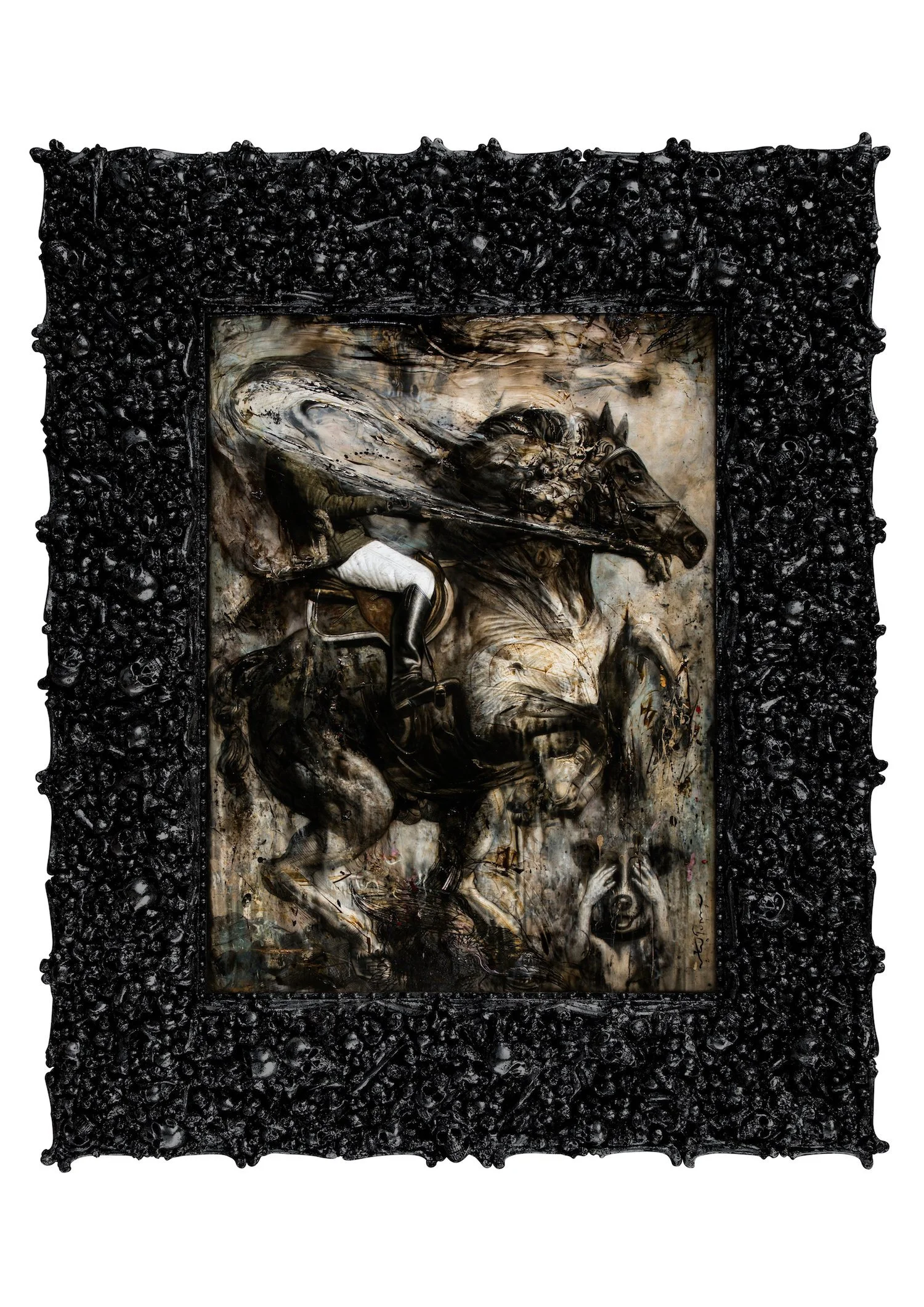 Ronald Ventura, Over Charge, 2017, oil on canvas, 173 x 142 x 10cm (with frame). Image courtesy of Primo Marella Gallery.