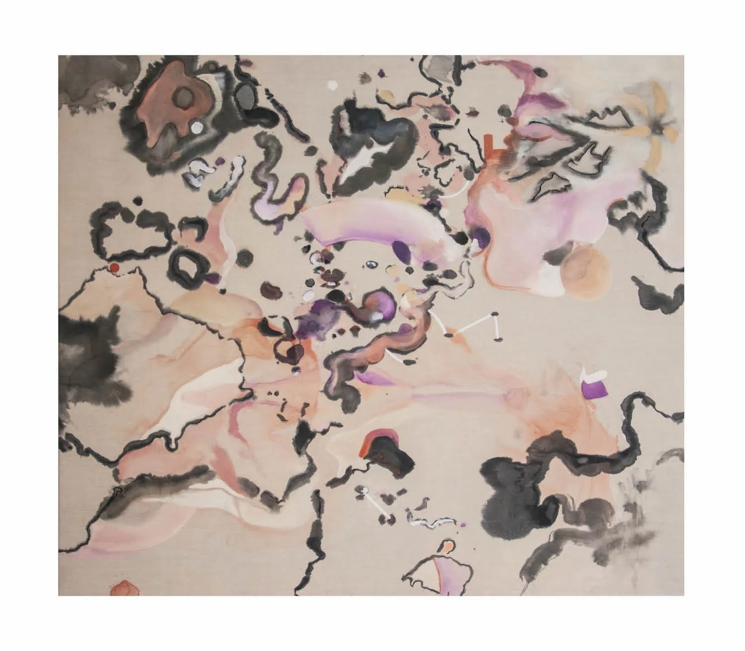 Joanne Pang, Soft Plots, Chinese ink, acrylic and marker on polycotton, 120 x 100cm. Image courtesy of Affordable Art Fair.