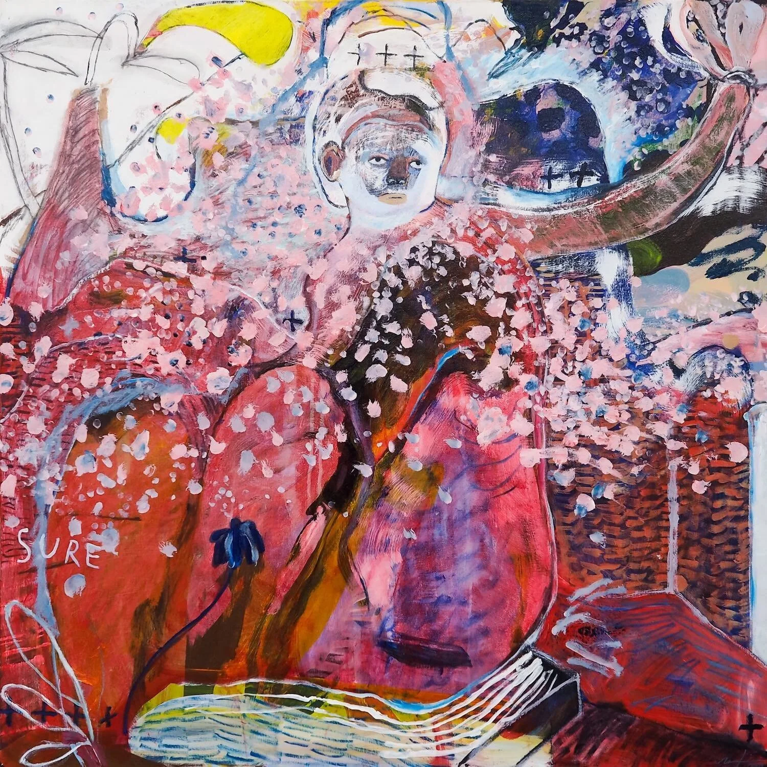 Natisa Jones, Unfamiliar Visits, 2019, acrylic on canvas, 100 x 100cm. Image courtesy of G13 Gallery.