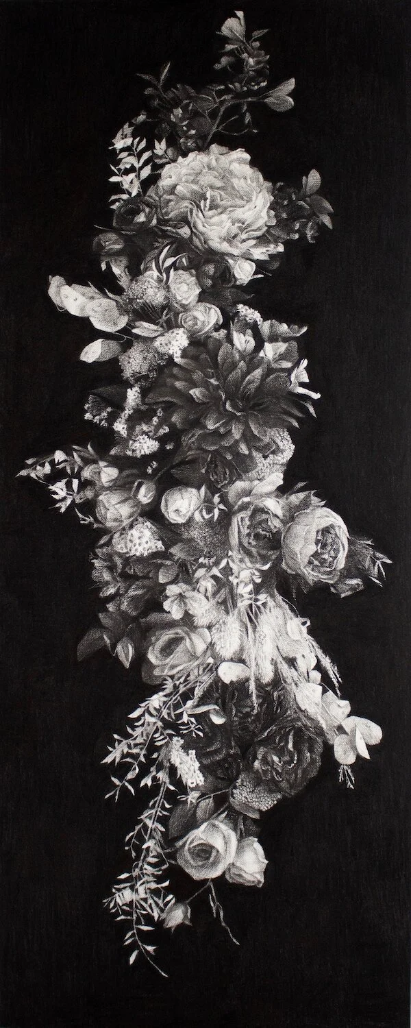Yanyun Chen, This Line is False No.1, 2019, charcoal on paper mounted on aluminium 150 x 60cm. Image courtesy of Art Porters Gallery.