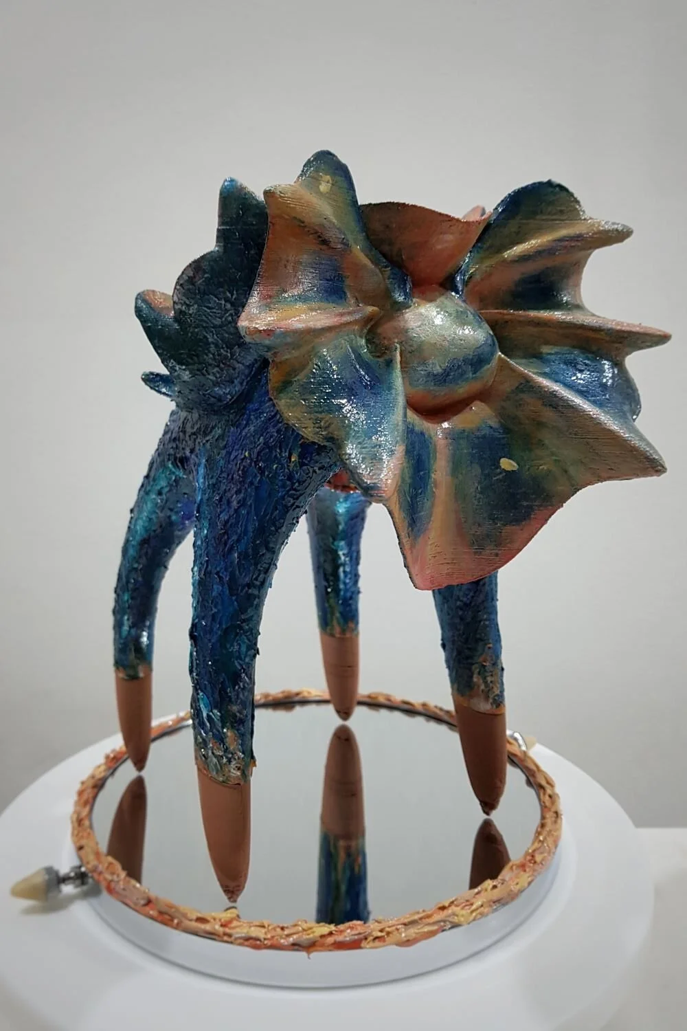 Julian Udine, Pseudo Animalia: In Scrutiny, 2020, thermoplastic, polymer, wood, copper, acrylic paint, mirror, stainless steel, 25.4 x 25.4 x 20.3cm. Image courtesy of Signum.