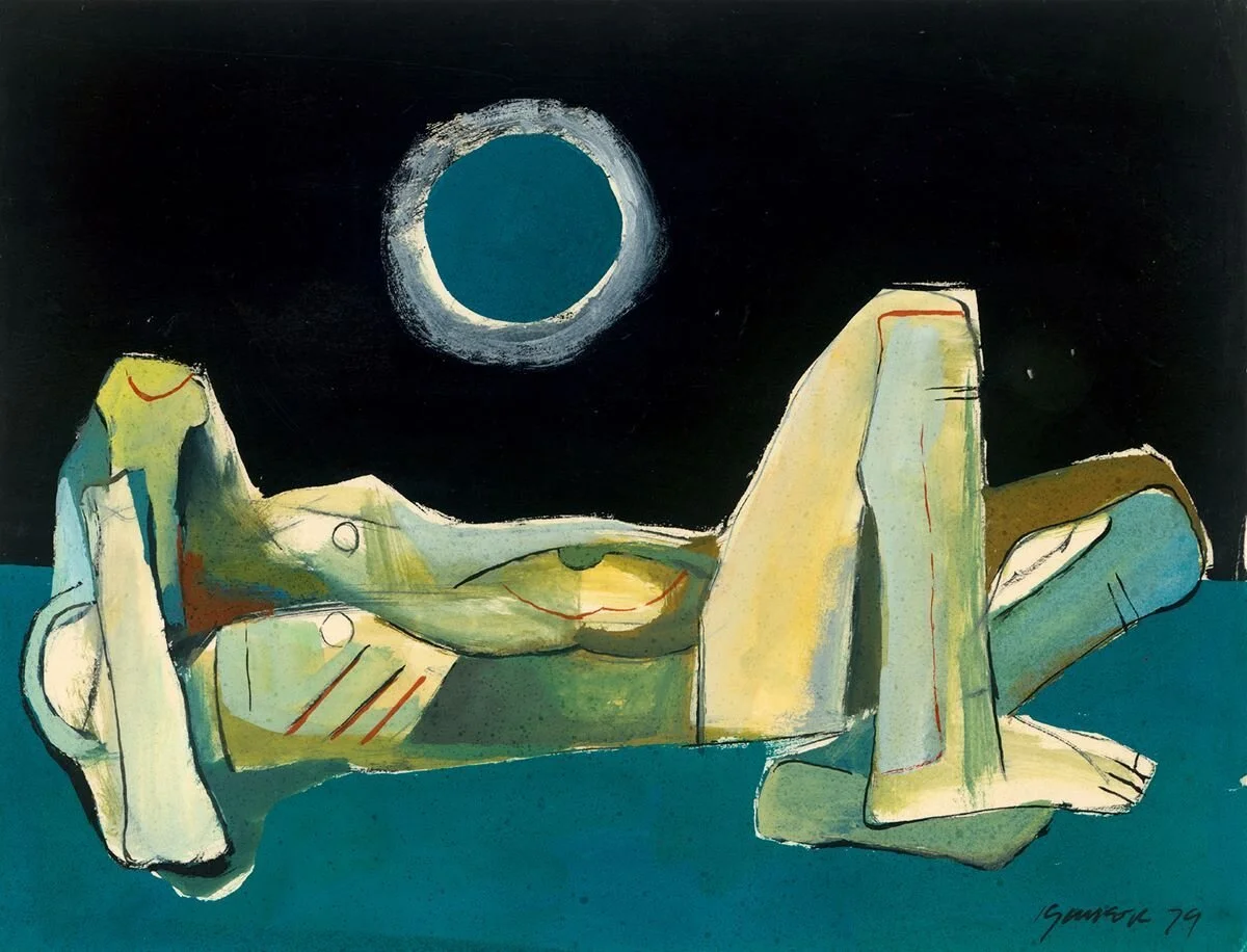 Ang Kiukok, Meditation Under the Moon, 1979, watercolour on paper, 23 x 30cm. Image courtesy of Art Agenda, S.E.A..