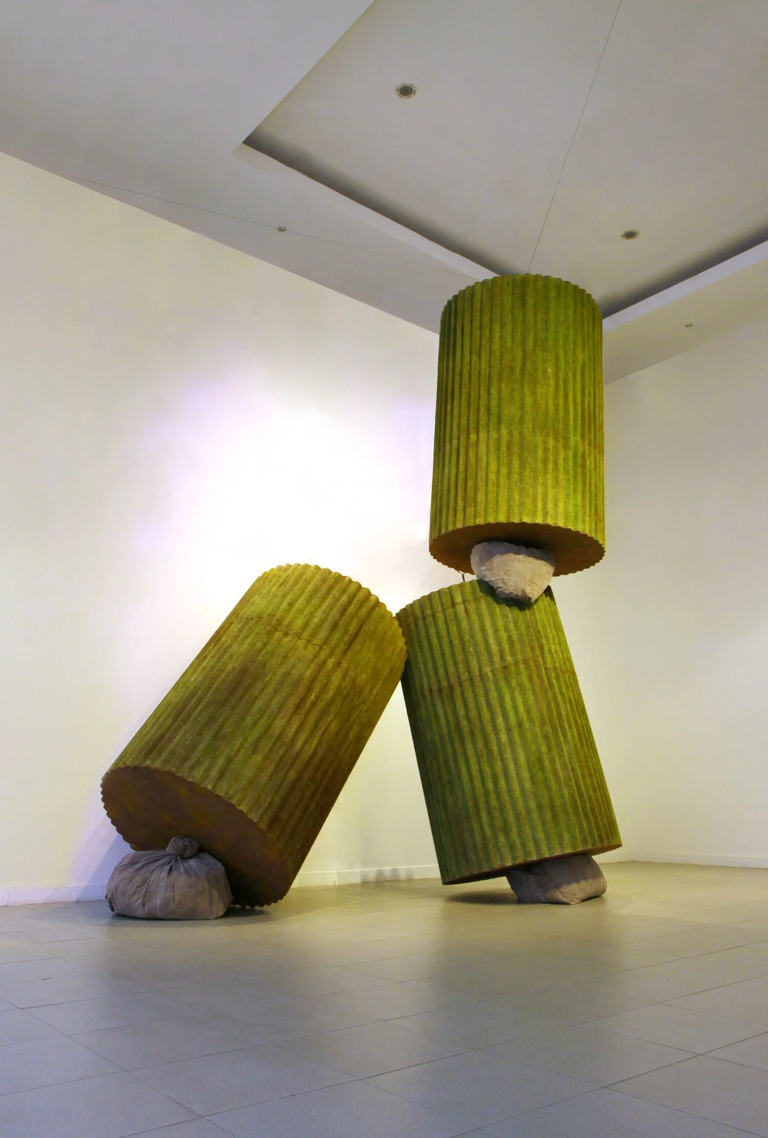 Handiwirman Saputra, Tak Berakar, Tak Berpucuk - No. 7 (No Roots, No Shoots - No.7), 2011, plywood, cloth, corrugated roof sheet, screen print puff ink, steel and acrylic paint, edition unique, 183 x 118cm. Image courtesy of Gajah Gallery.