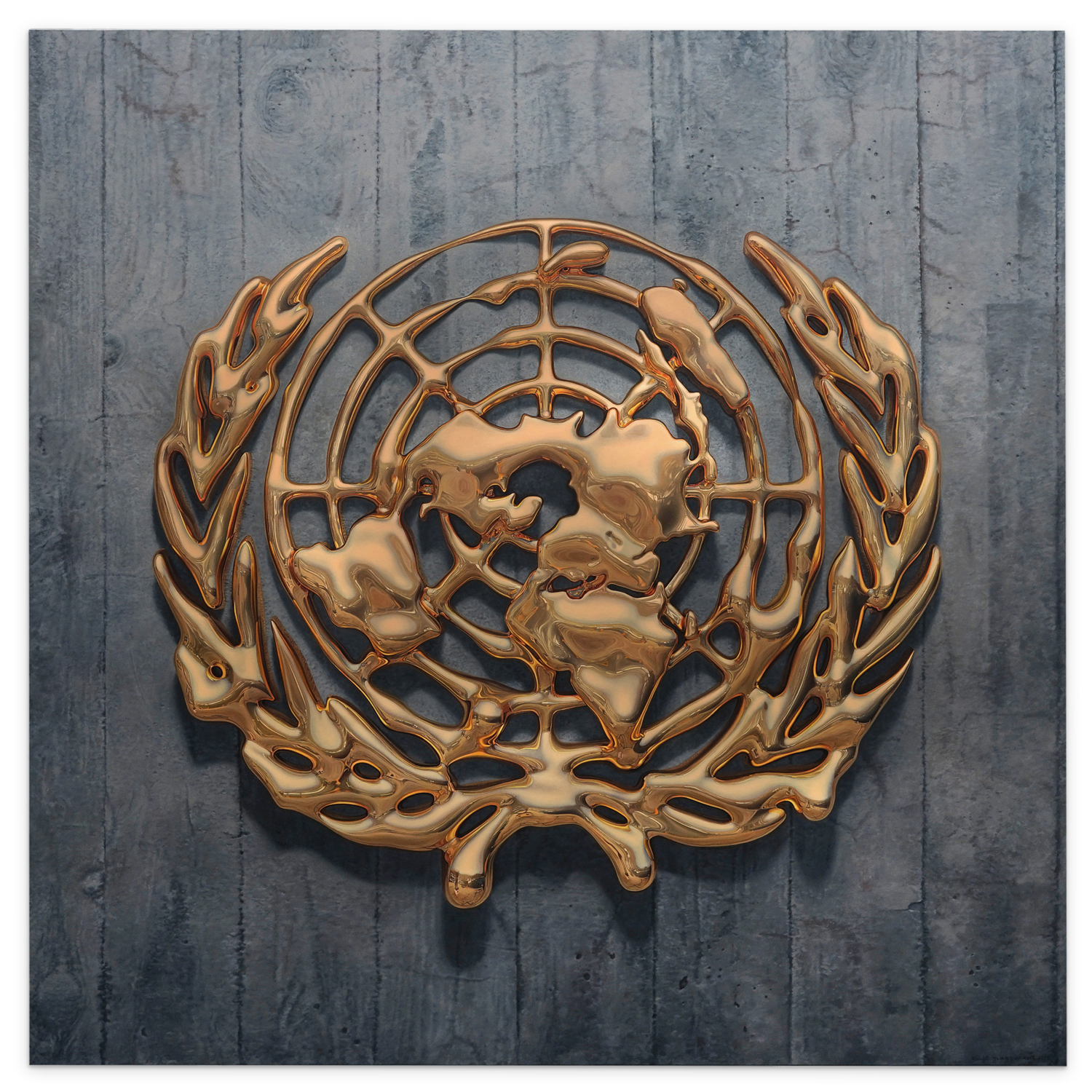 Rudi Mantofani, Simfoni Bumi Langit (Gold Series No.7) [Earth Sky Symphony (Gold Series No.7)], 2020, acrylic on canvas, 200 x 200cm. Image courtesy of Gajah Gallery.