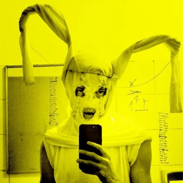 Jed Gregorio, Tarzeer Pictures, Self Portrait As A White Rabbit, inkjet print on tarpaulin, 177.8 x 177.8 cm. Image courtesy of Art Fair Philippines.