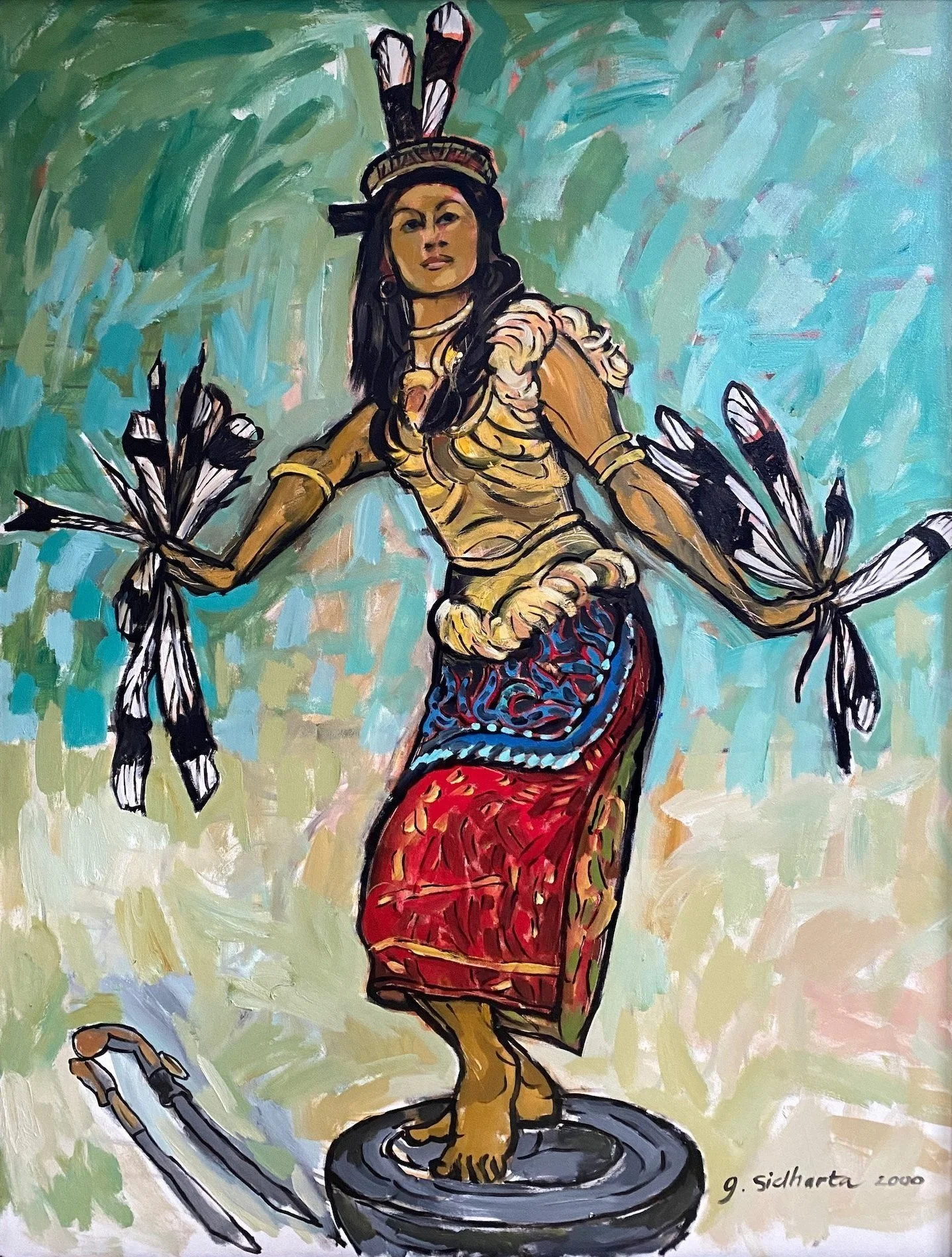 G. Sidharta, Tari Gong Mandau, 2000, oil on canvas, 135 x 100cm. Image courtesy of Art Agenda.