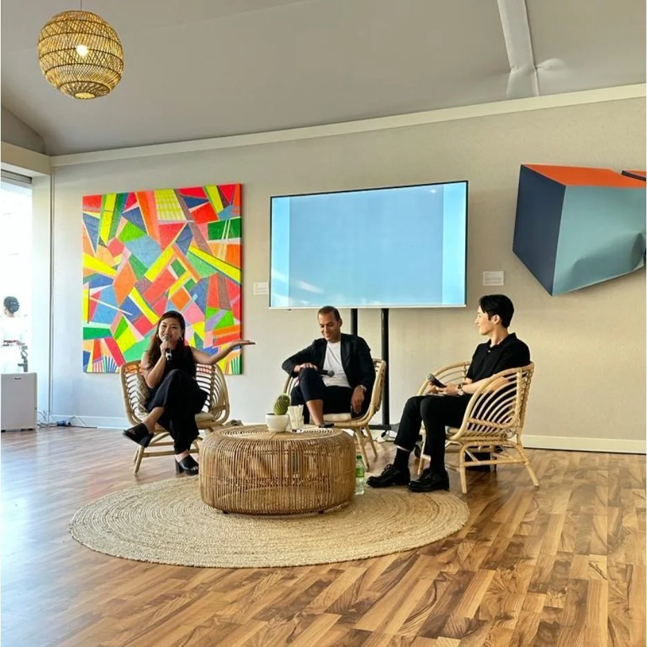 Art Dubai 2023 Collector Talks presented with Dubai Collection at the A.R.M. Holding Majlis, Madinat Jumeirah. Collecting in a Shifting Global Cultural Map, featuring Teo Yang and Charif Ben Romdane, moderated by Nadya Wang.