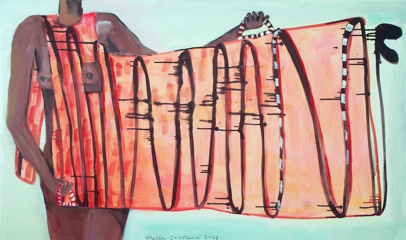 Mella Jaarsma, Mbak Punah I, 2021, acrylic, charcoal on canvas, 120 x 200cm. Image courtesy of the artist and ROH.