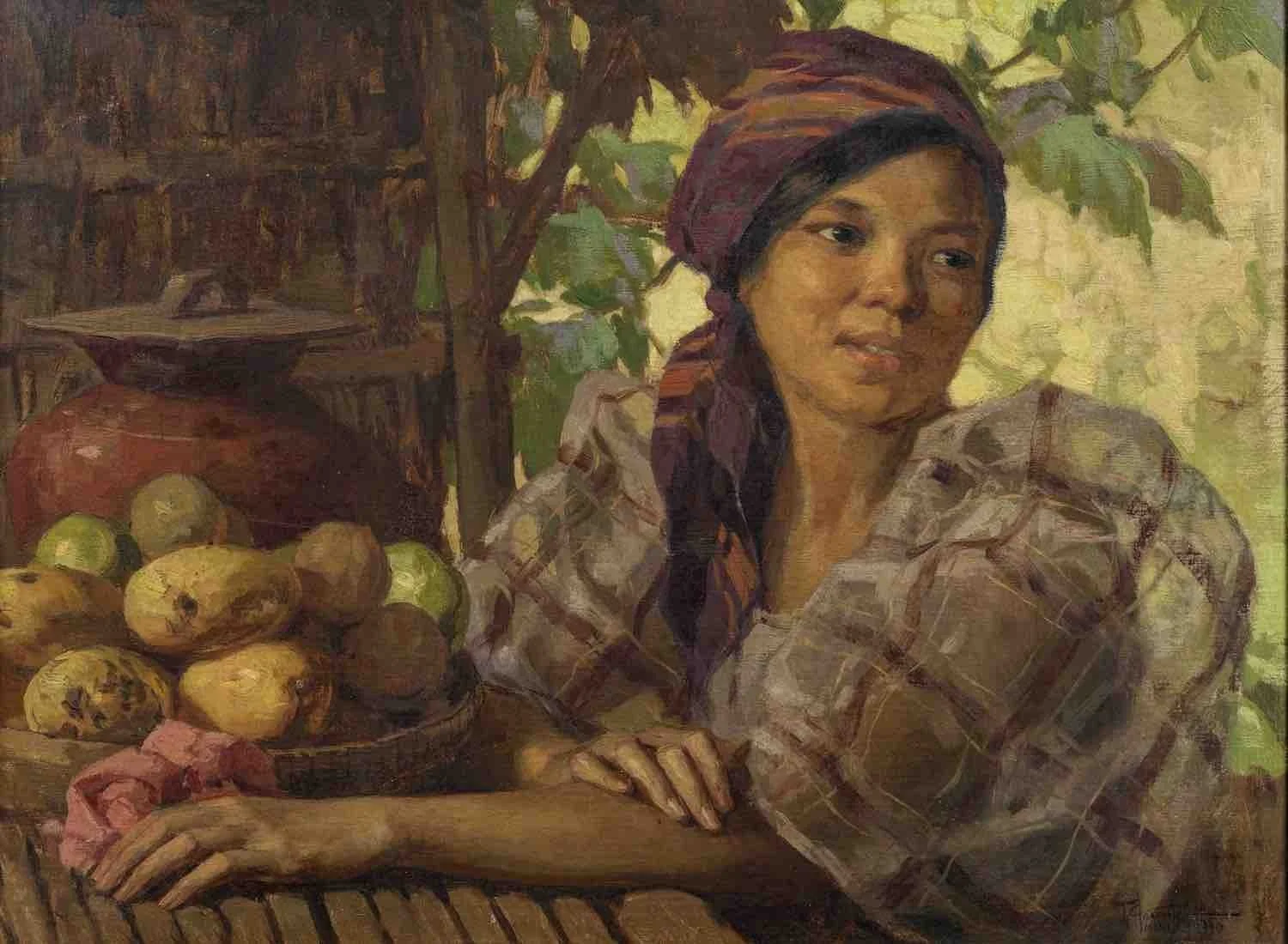 Fernando Amorsolo (Filipino, 1892-1972), Maiden with Fruits, 1930, oil on canvas, 48 x 66cm. Image courtesy of Bonhams.