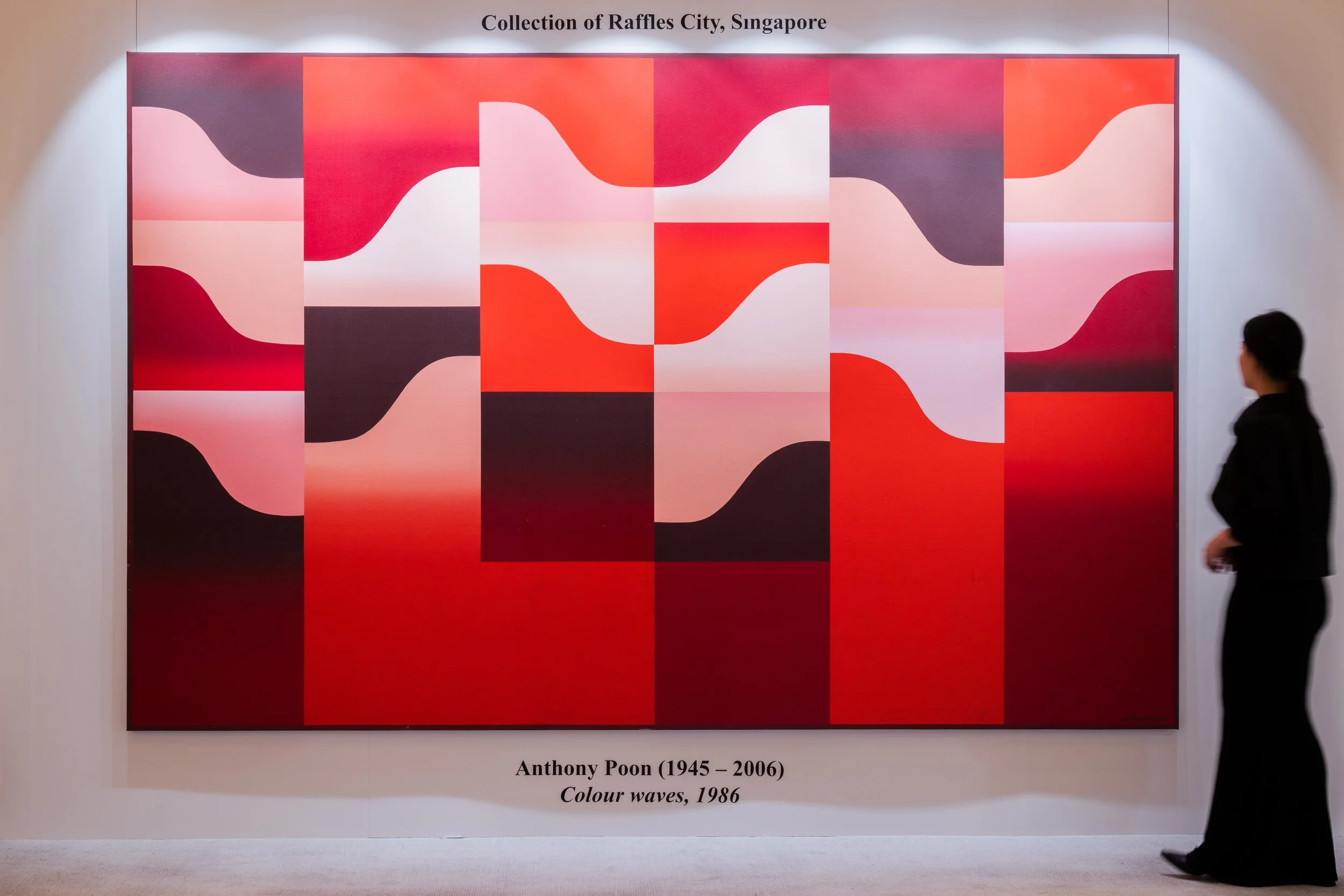 Installation view of preview of the Sotheby’s Modern & Contemporary Art auction at The Singapore EDITION, showing a work by Anthony Poon. Image courtesy of Sotheby’s.