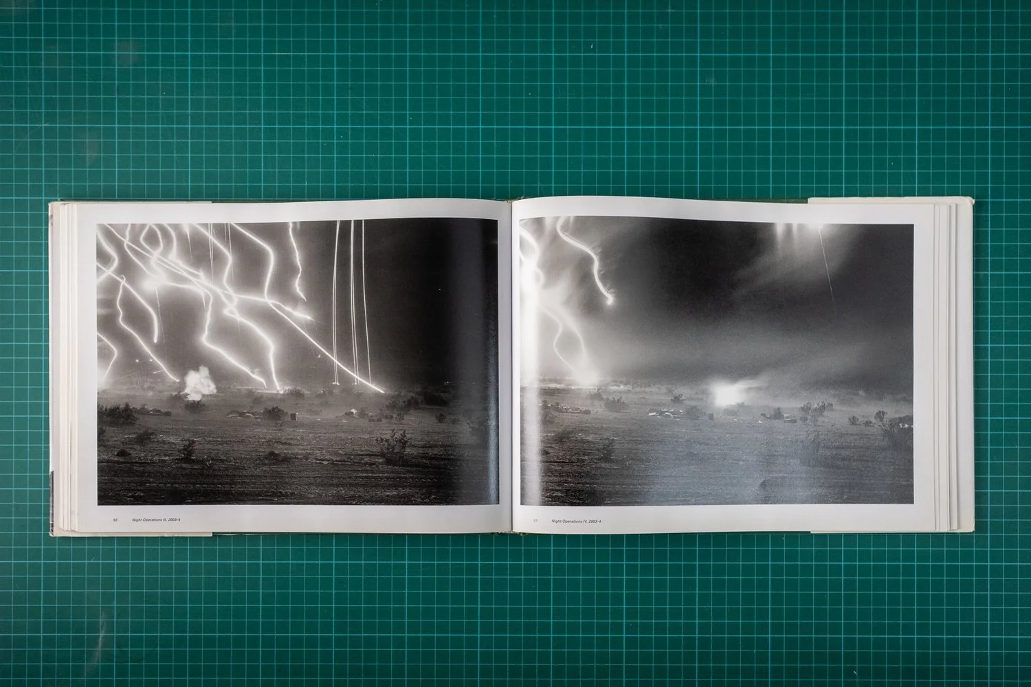 Leafing through the books, one finds themselves in three different worlds, aesthetically and psychologically, albeit complementing one another under the same theme. There is also a sameness: the camera of choice, black-and-white film, the large format. Framings differ, so do presentations of landscapes. The change probably reflects the photographer’s evolution of perspectives on the subject of war.
