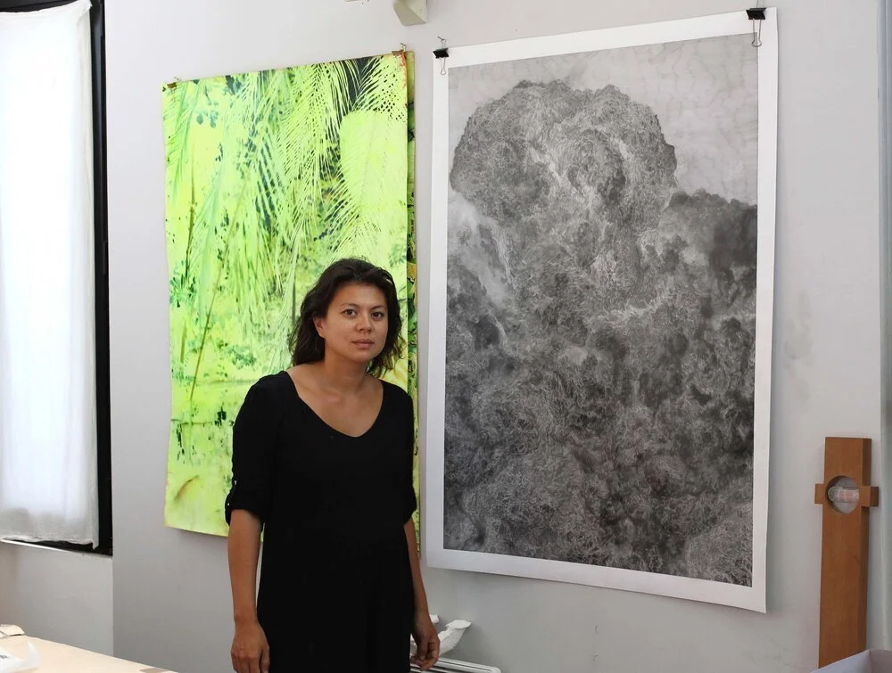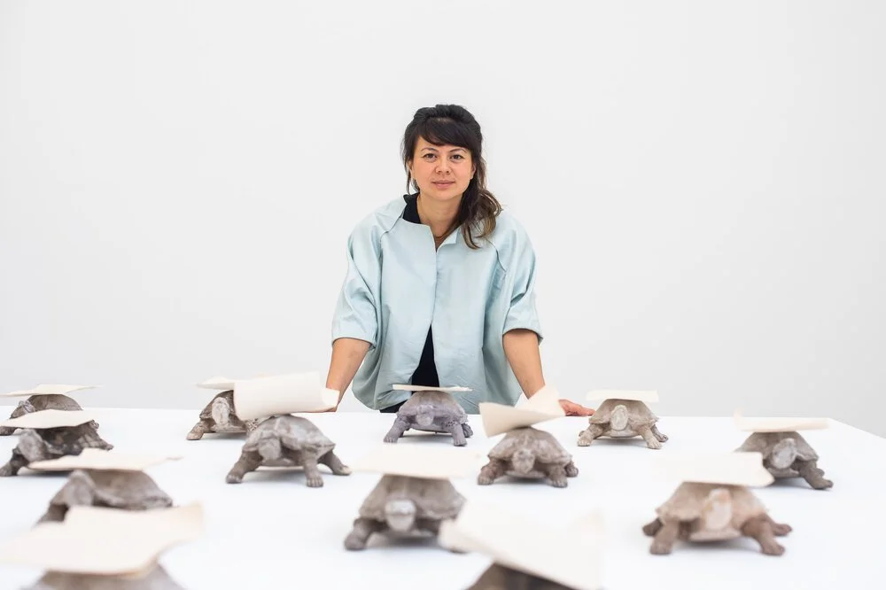 Thu Van Tran in front of her work At a Tortoise's Pace (2019). Photo by Julio Piatti. Image courtesy of the artist and Almine Rech.