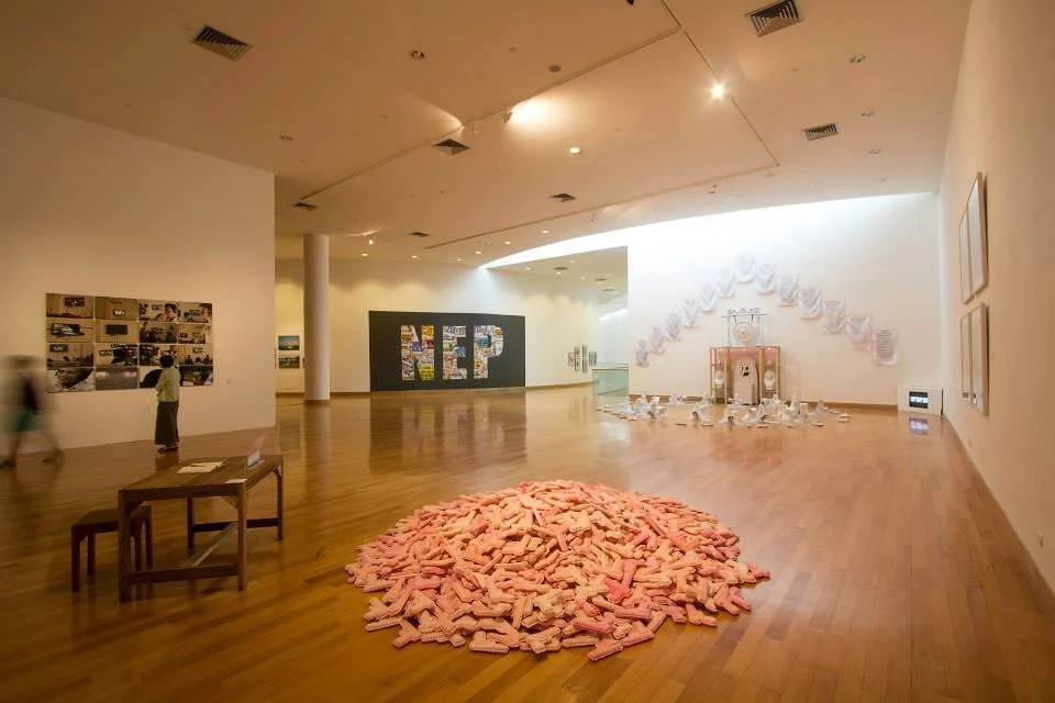 An installation view of Concept. Context. Contestation: Art and the collective in Southeast Asia at Bangkok Art & Culture Centre in 2013. Image courtesy of Jakarin Tewtao and Bangkok Art & Culture Centre.