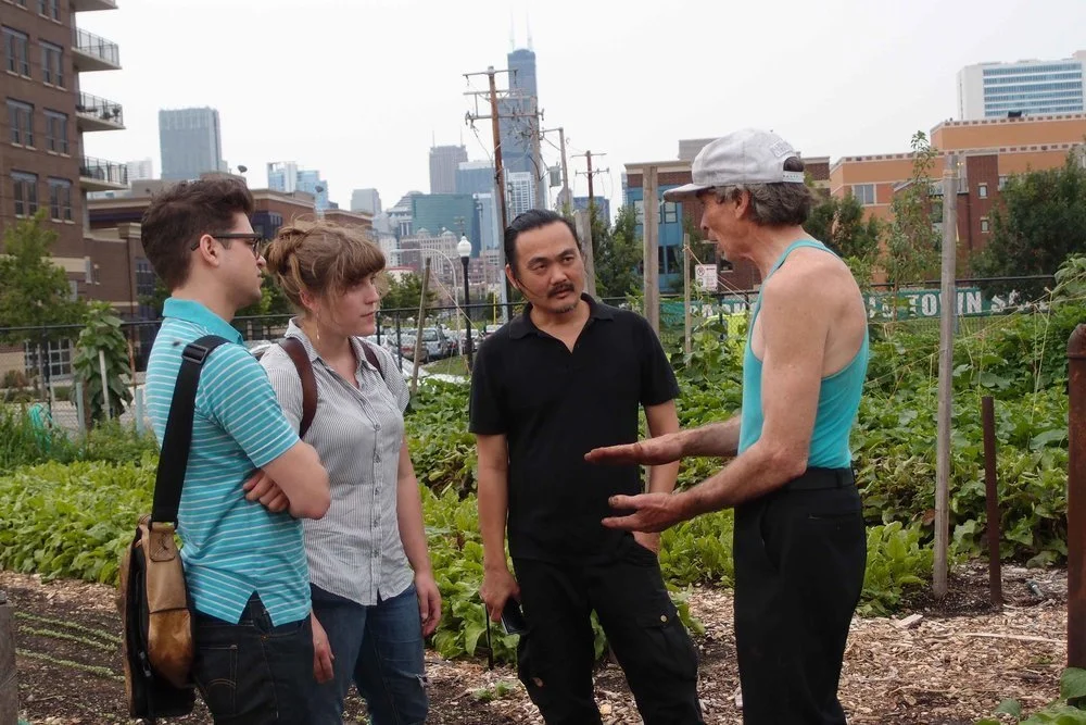 Kamin Lertchaiprasert and his class vising City Farm in Chicago during the preparation of 31st Century Museum of Contemporary Spirit Laboratory @ Chicago in 2011. Image courtesy of Vipash Purichanont.