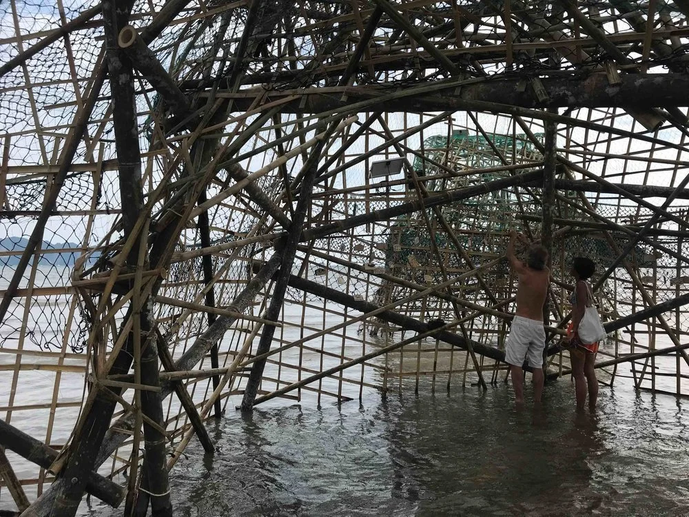 For the first edition in Krabi, a unique challenge was its outdoor site-specific nature. We had to consider if the pieces could work in the specific locations in parks, beaches, swamps and waterfalls, while also speaking to environmental issues. One example is Ghost Island, a project by Hong-Kong based architect Map Office. They constructed a six-metre tall bamboo structure, covered with ghost fishing nets that the local divers recovered from the ocean. Ghost nets are fishing equipment that are left behind in the sea, and continue to fish on their own. The island makes visible ghost fishing as an autonomous activity which is otherwise invisible to us, terrestrial animals, despite the fact that it derives from our responsibility to the environment.