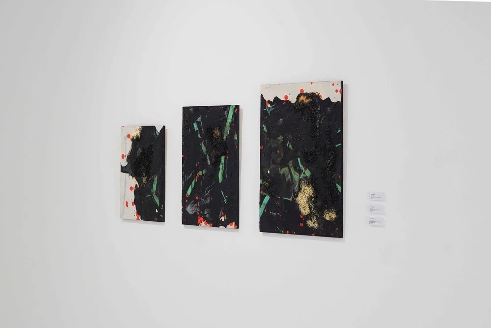 Instead of viewing them as a continuous series, I prefer seeing the different works as parallels. I also wanted to reduce dependence on a single medium. Due to the unpredictable nature of my processes, I always produce an excess of works and narrow down a selection for the exhibition. Those that don’t make the cut will be reused for future paintings.
