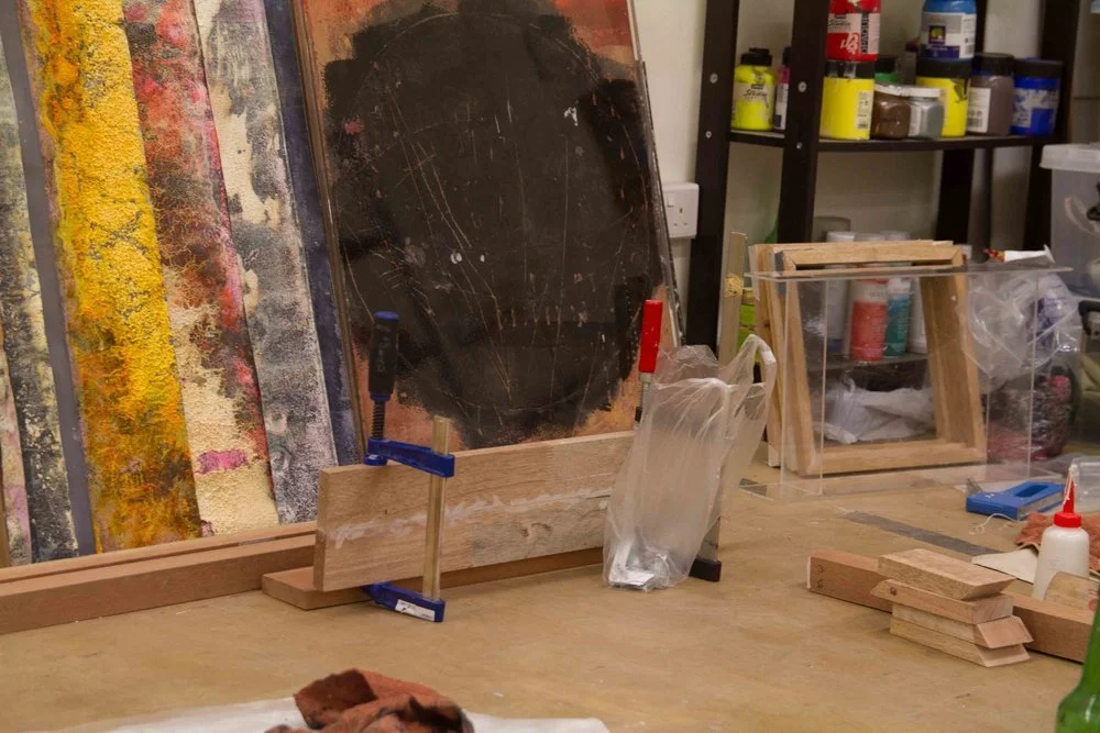 My paintings require a lot of waiting time so staying in camp on weekdays and booking out on the weekends happens to fit my workflow. Of course, I still prefer staying out! The five days spent in camp also act as a breathing space between the short spurts of studio time. I use this period to think about the next steps to execute and how I can maximise my free time. When the weekends come, I’m always excited to see the outcome on the paintings with a fresh pair of eyes.