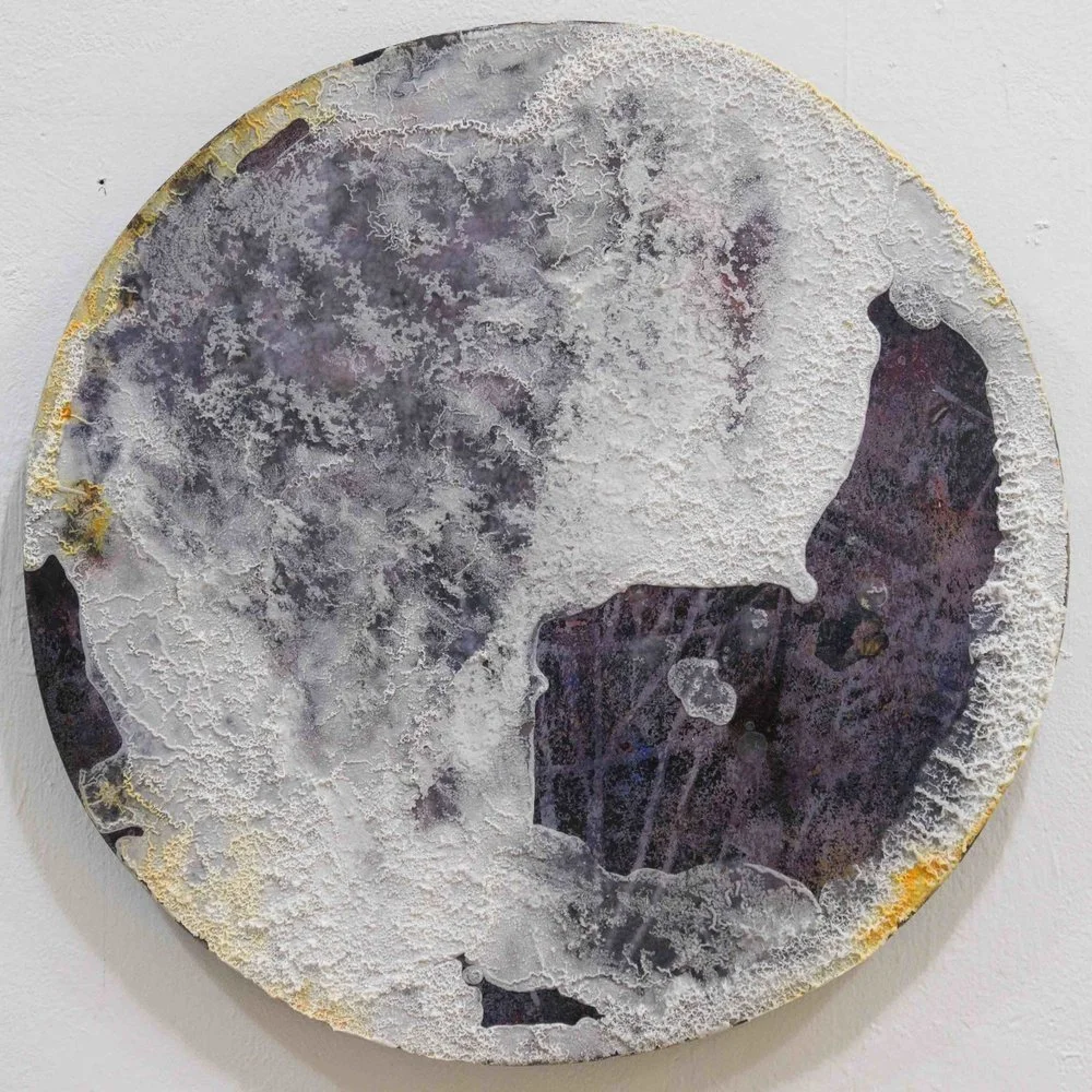 Jay Ho, Enceladus, 2017, acrylic foam print and resin on wood, 60cm (diameter). Image courtesy of the artist.