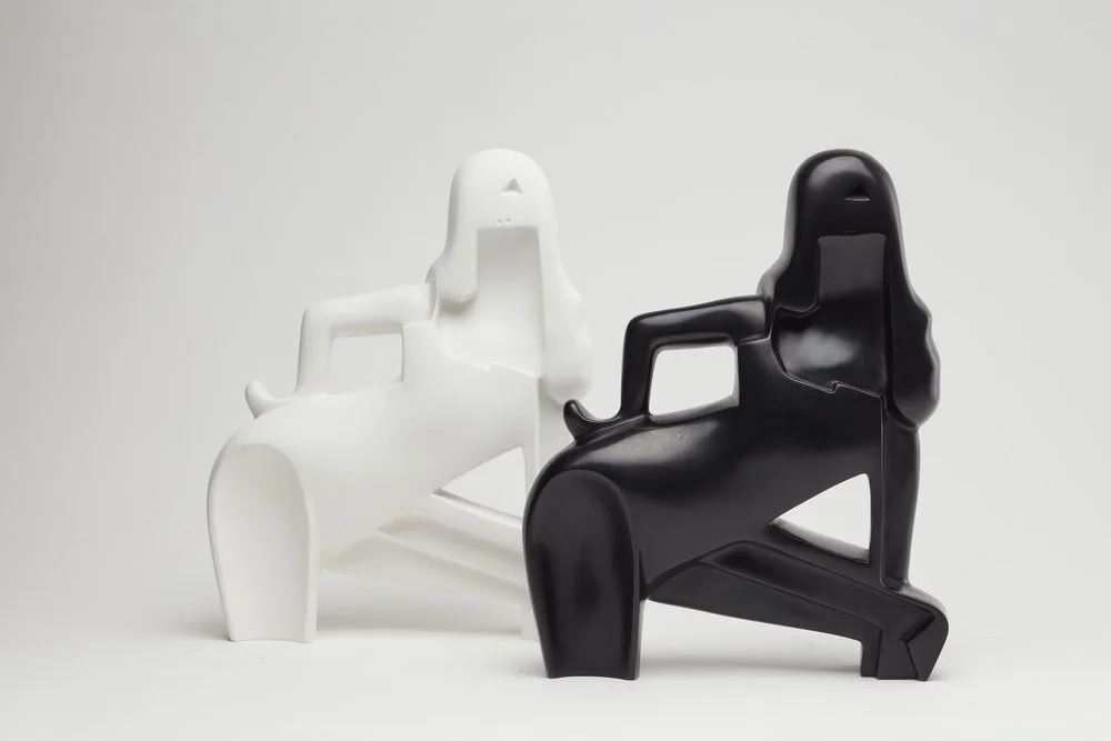 Left to Right: Tomoo Gokita, A Bathing Beauty, 2015, bronze with white patina, 28 x 22 x 7cm. Tomoo Gokita, A bathing Beauty, 2015, bronze with black patina, 28 x 22 x 7cm. Image courtesy of Phillips.