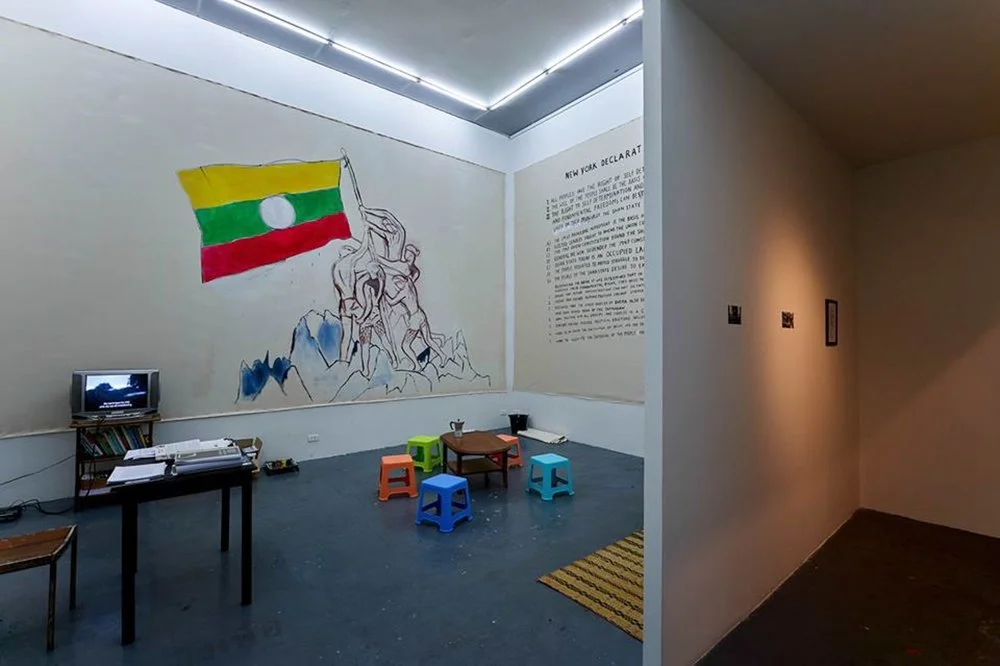 Sawangwongse Yawnghwe, Yawnghewe Office in Exile/ Platform to Dissent, 2018, installation view. Image courtesy of the artist.