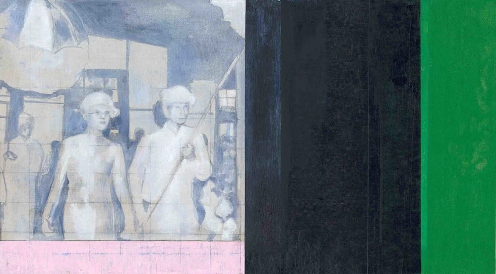 Painting at this moment, I claim, is the most radical action one can embark upon. I see painting as the new language imposed on me as a result of my exile. When I grew up in the jungles along the Shan-Thai border and in Thailand, Western painting practices were unknown to me. I was not exposed to it until my family escaped to Canada when I was at the age of 12. To me, painting is "a thing that emerges out of its own loss”, to borrow Zizek's words. In this case, the four edges which make up a rectangle or a square constitute a painting. I ended up with these compositions through cutting up and blocking off the images, like old family photographs. There is this sense of dealing with and coming to terms with loss, new codes and new languages. I have tried to ease myself into and out of my predicaments.