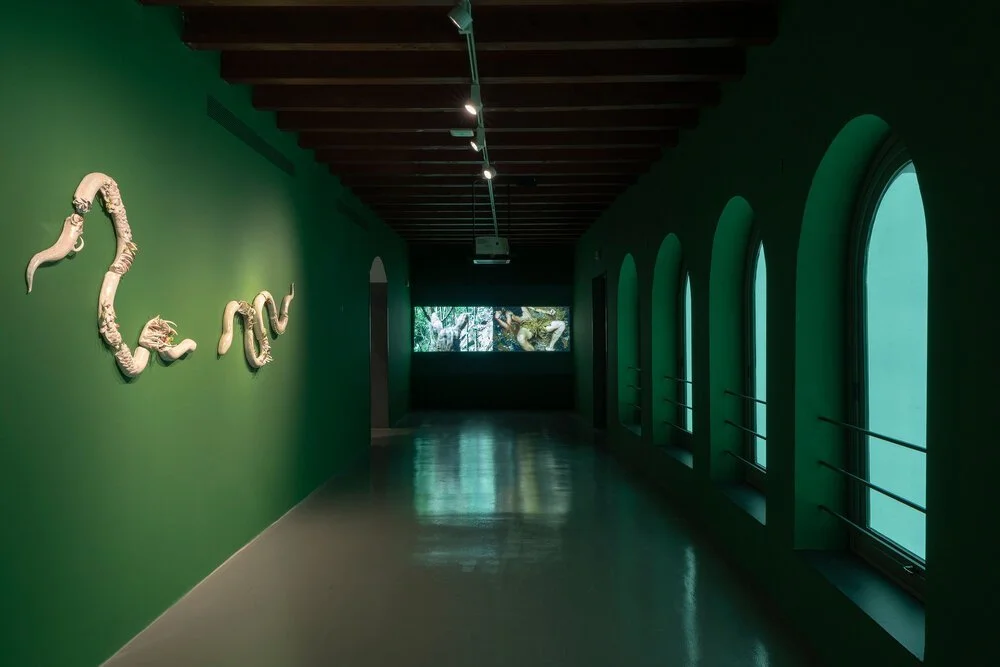 In The Forest, Even The Air Breathes, 2020, exhibition installation view at GAMeC, Bergamo. Presented as part of Premio Lorenzo Bonaldi per l'Arte - EnterPrize, 10th Edition. Photo by Lorenzo Palmieri, image courtesy of GAMeC - Galleria d'Arte Moderna e Contemporanea di Bergamo.