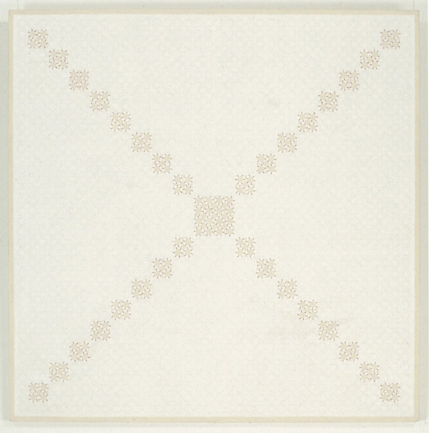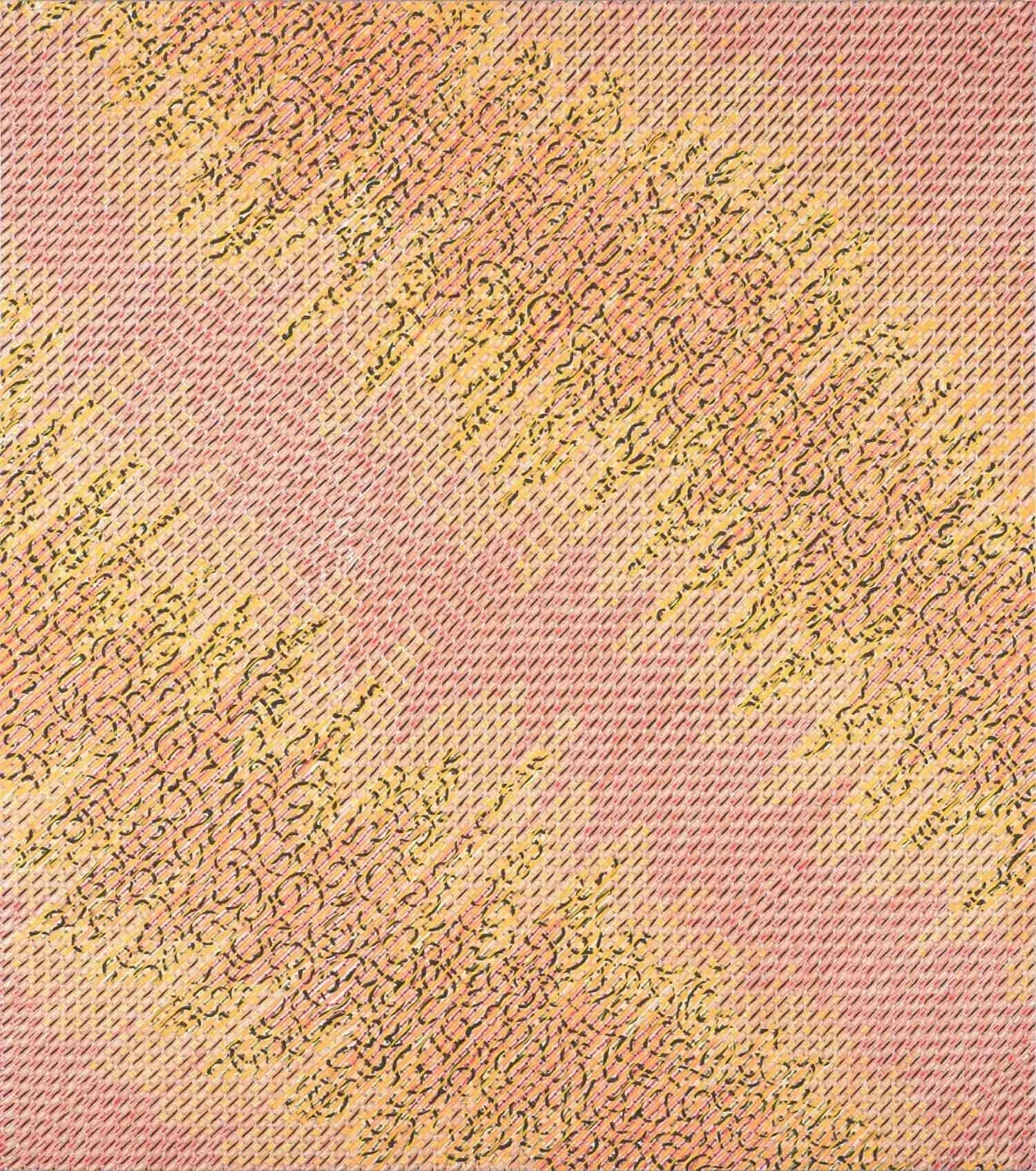 Your paintings synthesise a myriad of cultural references such as textiles from Laos and Southeast Asia, diagrammatic and textual representations of Buddhist concepts, as well as Australian Aboriginal painting. How do you negotiate between the rich, specific symbolism embedded in these forms and the “flattening” effect of abstraction?