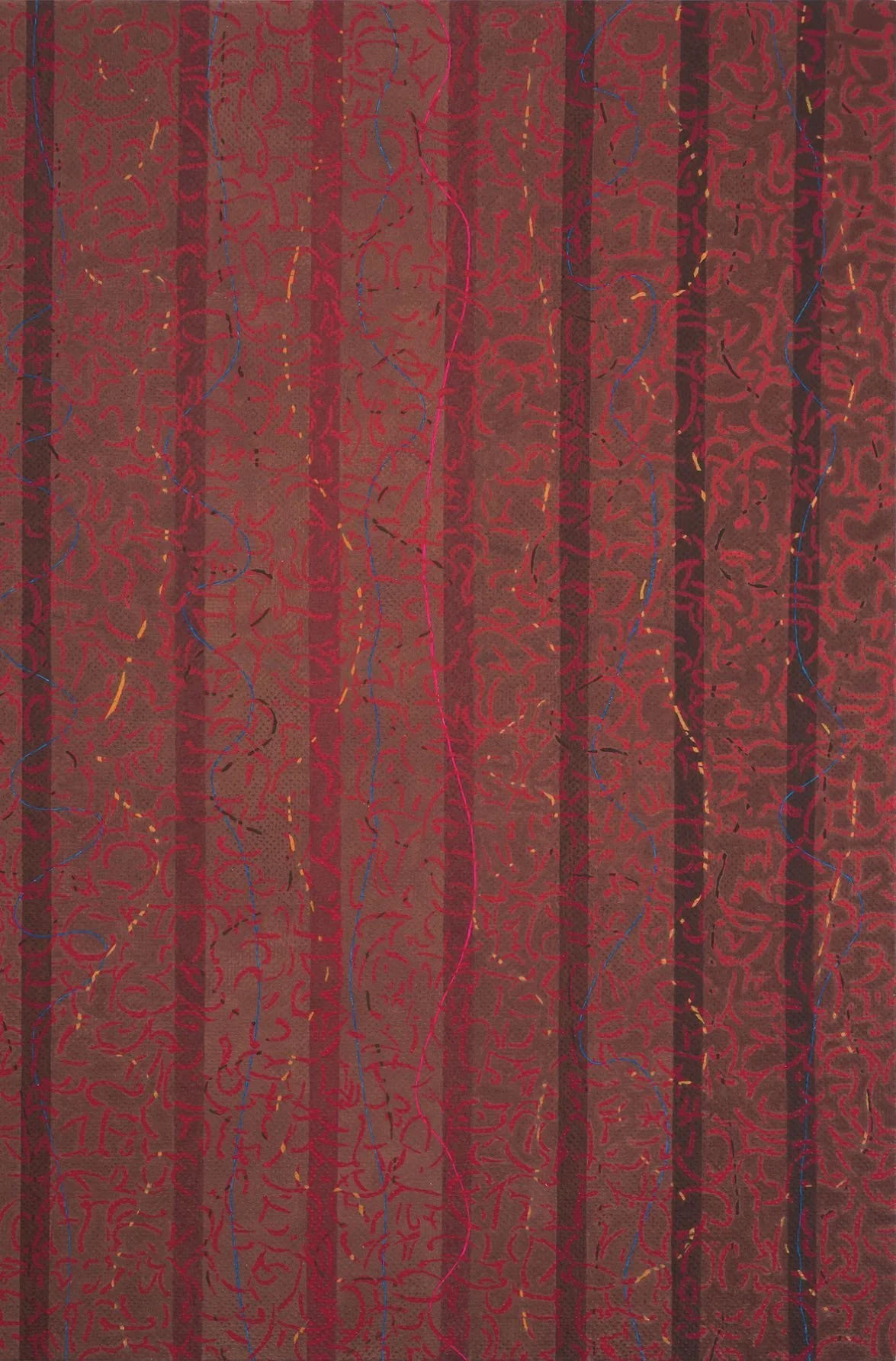 My works are all pre-planned, but only at the starting point. It always ends up different to what I had imagined it would look like. This is when the magic starts to happen, when the work dictates the direction I should take. This approach is sometimes precarious. To use an analogy, it is like climbing the steps of Angkor Wat, where the steps are steep and narrow and it feels like you could slip and fall backward anytime. But sometimes, a painting such as Fire Sutra II feels like it is on a smooth trajectory. I work on it until I am left with the feeling that there is nothing more to be done, and the work is declared finished!