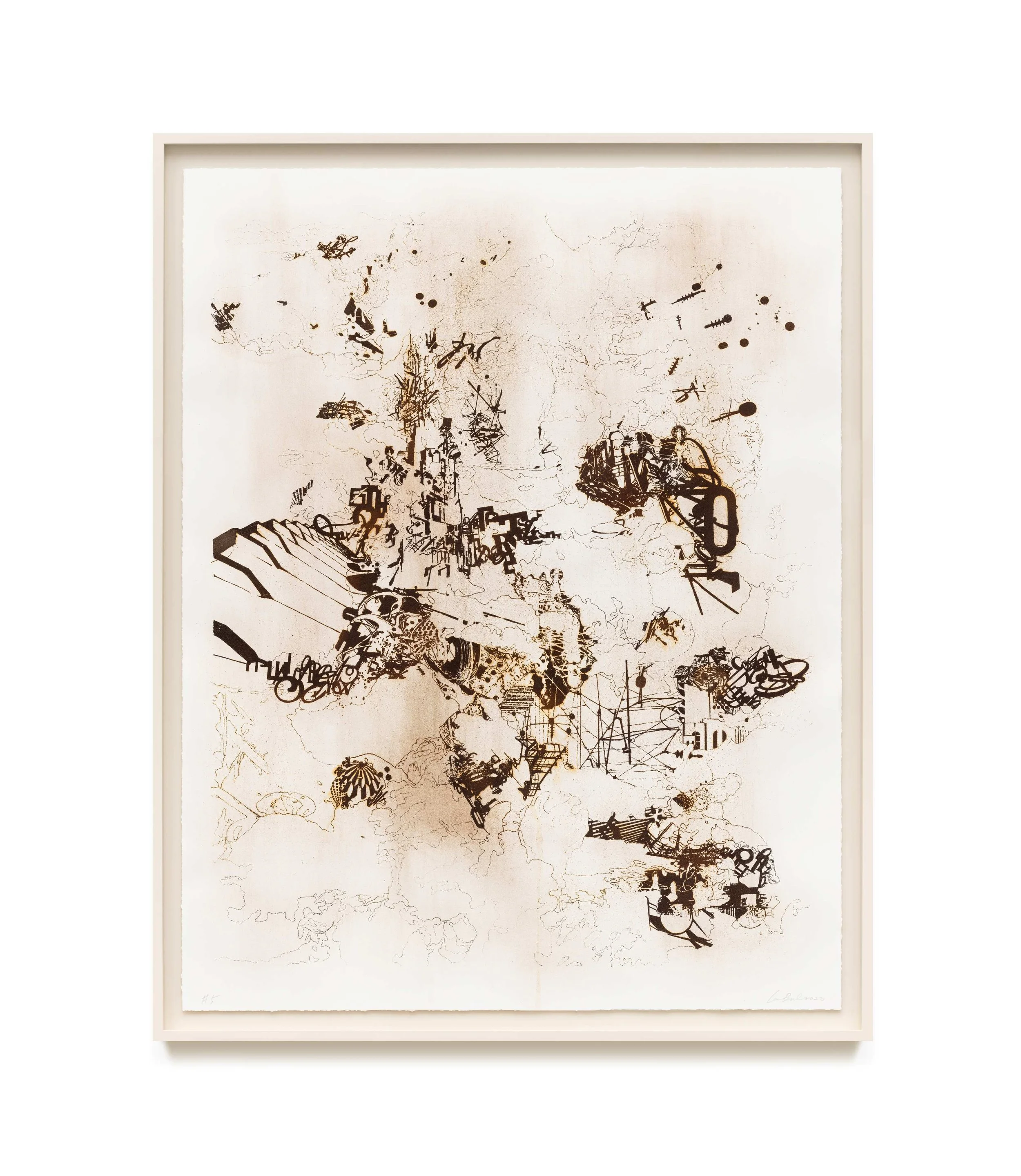 Lee Bul, Untitled – SI, 2023, screenprint with oxidised iron filings on paper, 119.8 x 95 x 4.5cm, variation 5 of 12. © LEE BUL. Image courtesy of the artist and STPI – Creative Workshop & Gallery, Singapore.