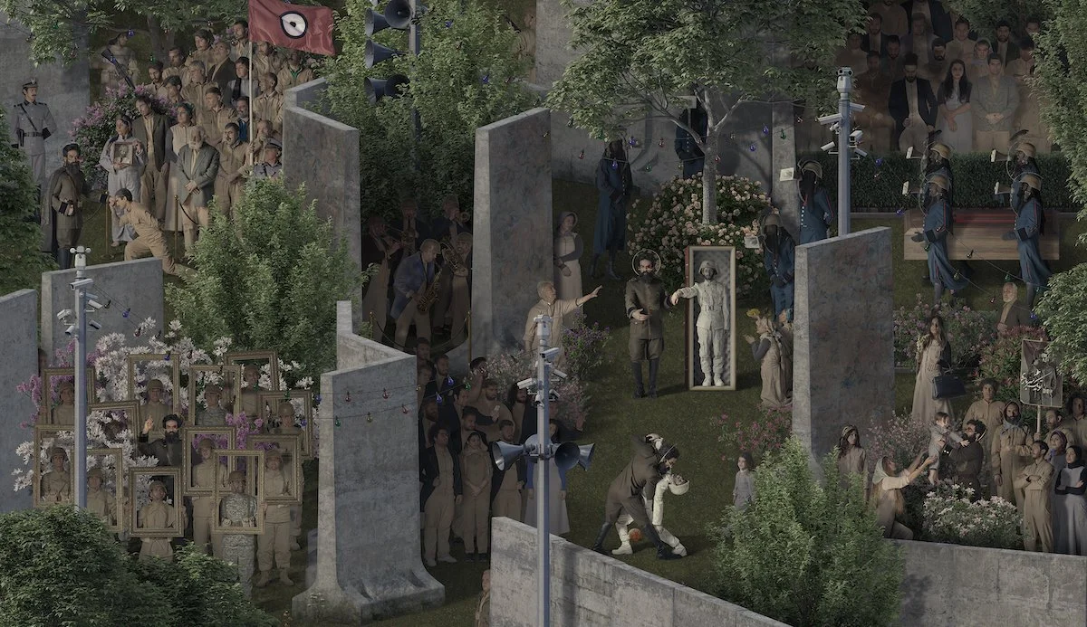 Siamak Filizadeh, Raising of Lazarus, 2021, collage by staged narrative photography & digital three-dimensional modeling by c-print, editions - 2 A/P, 150 x 260cm. Image courtesy of the artist.