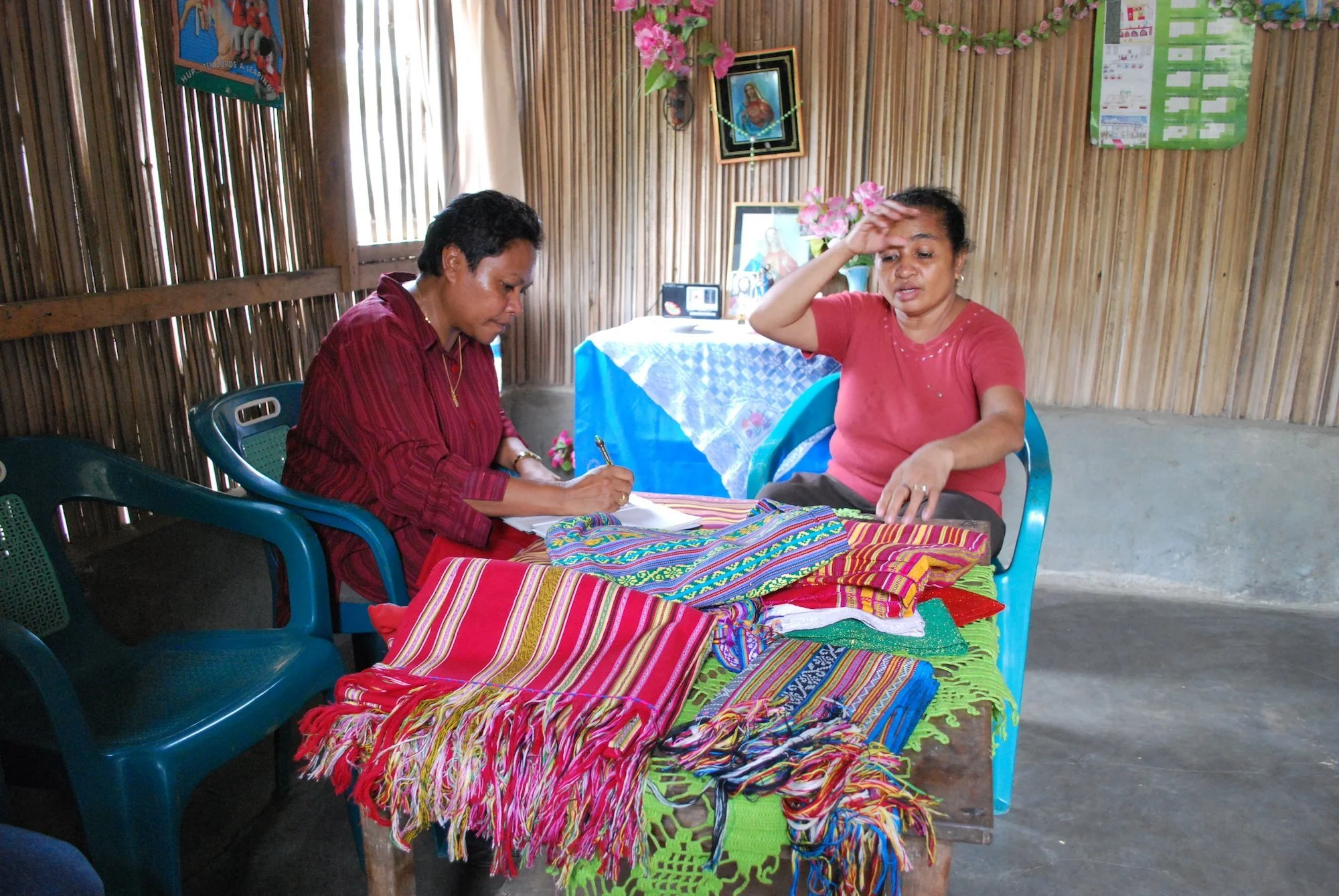 Maria with tais weaver in Viqueque, Timor-Leste, 2009. Photo By David Palazon.