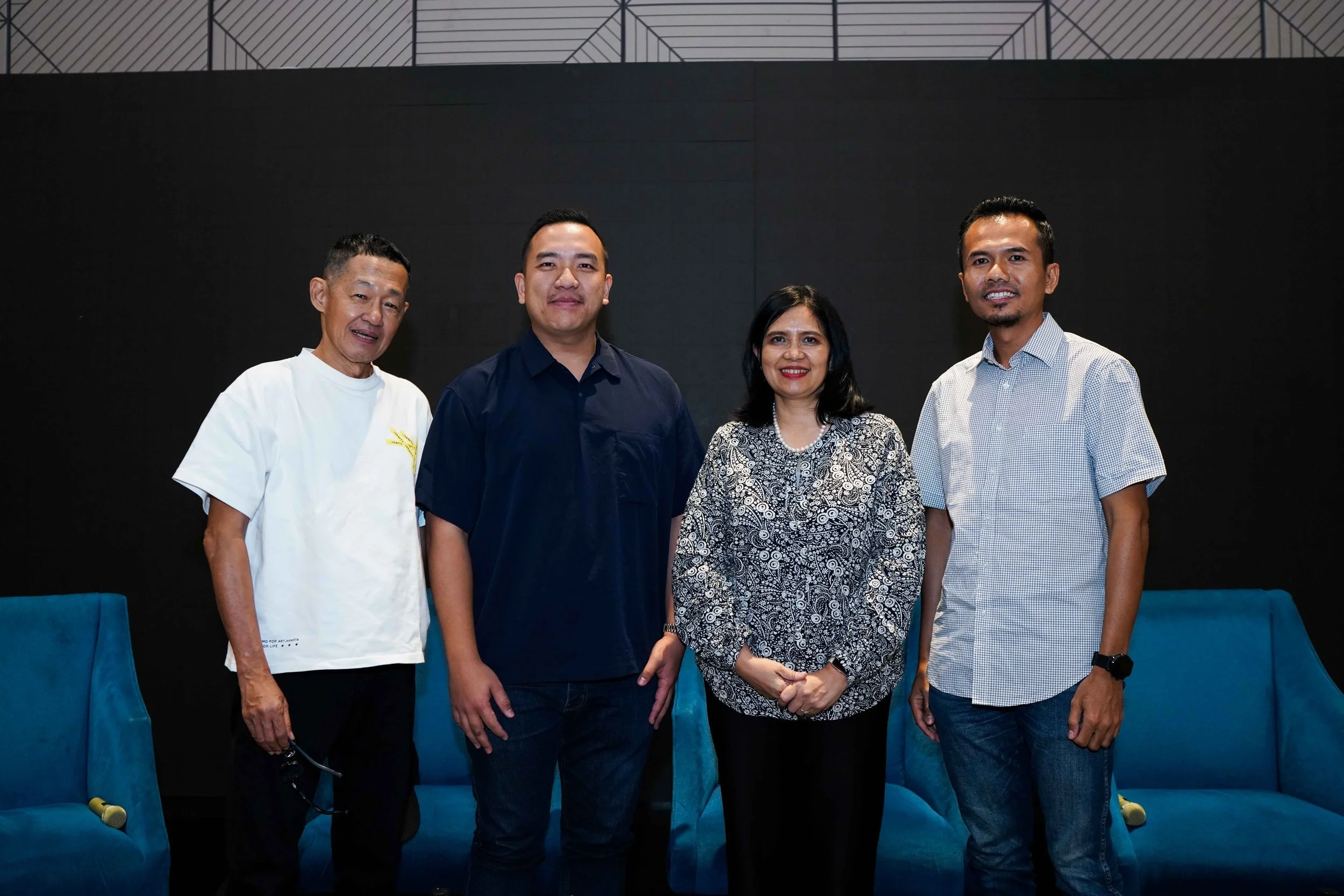 Media Gathering for Art Jakarta 2024 at Artotel Mangkuluhur, Jakarta, 11 September 2024, with Artistic Director Enin Supriyanto, Maya Rizano (UOB Indonesia), William (Bibit and Stockbit), and Anang Samsudin (Treasury). Image courtesy of Art Jakarta.