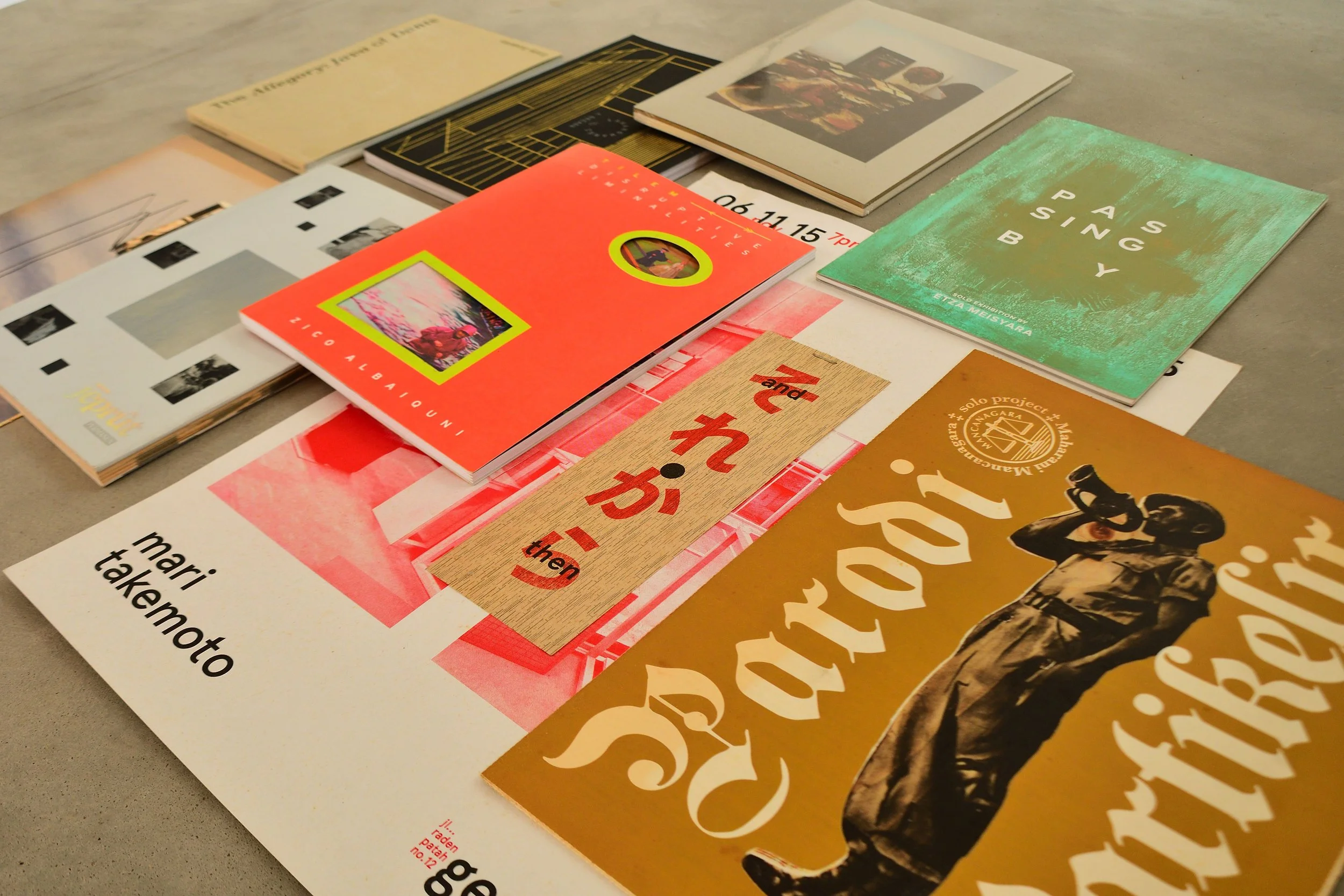 Publication design and print production outputs for various artists and art spaces. Photo by Irfan Hendrian.