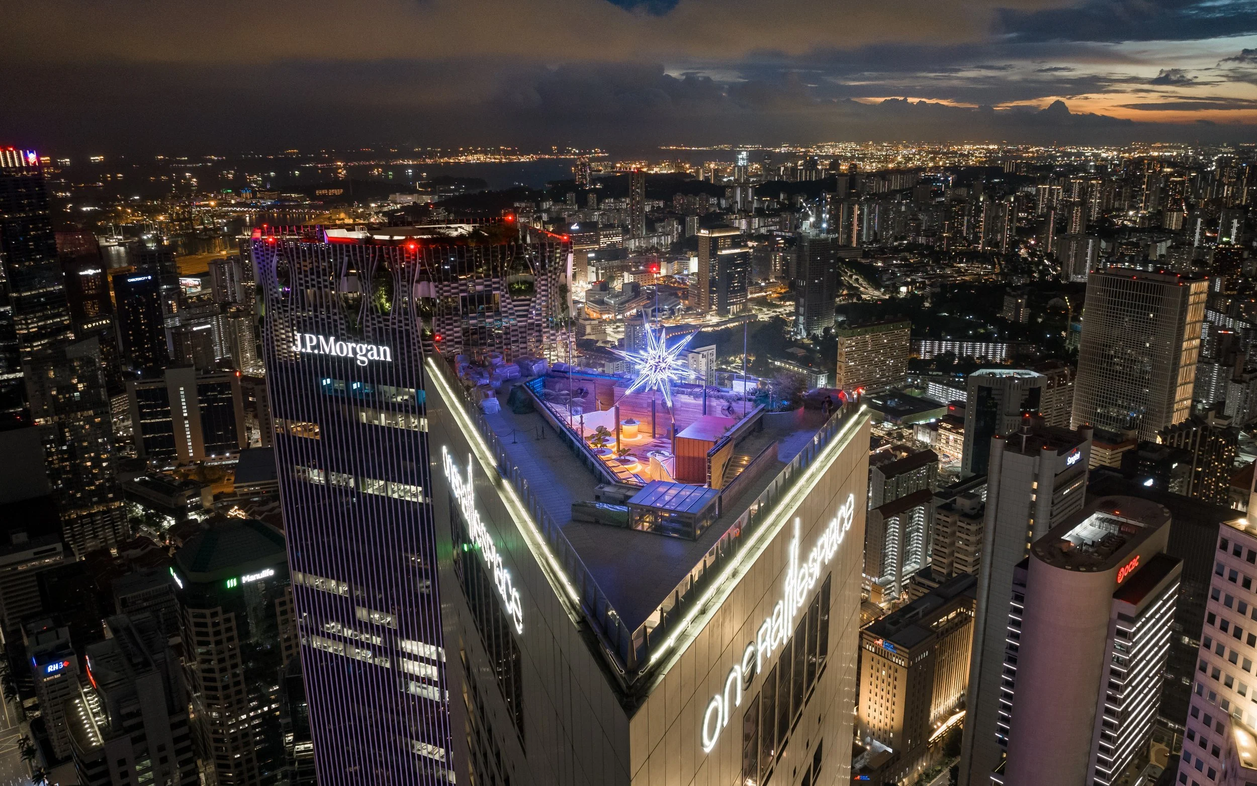 Jun Ong, ASTRA, 2024, installed on the rooftop of One Raffles Place, Singapore. Photo by Rendy Aryanto, Artogo Production.