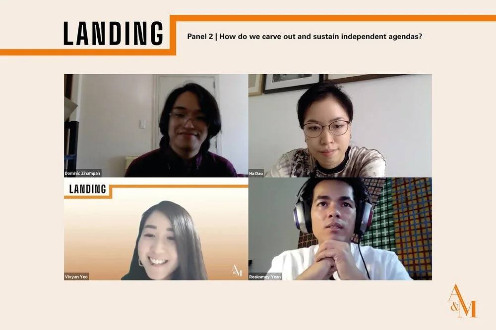 The second talk of LANDING saw a fruitful conversation on how independent spaces are working towards their goals of encouraging productive criticism, achieving financial sustainability and engaging the artistic community. The panel featured Dominic Zinampan, Managing Editor, Green Papaya Art Projects, Ha Dao, Managing Editor & Programme Coordinator, Matca and Reaksmey Yean, Programme Director, Silapak Trotchaek Pneik (STP). The conversation was moderated by Vivyan Yeo, Writer, A&M.